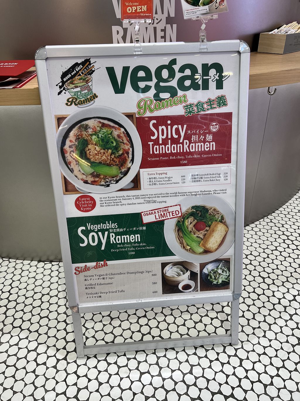 Had the soy vegan ramen and the spicy tandan vegan ramen. Both were delicious and had vegan matcha ice cream as dessert !