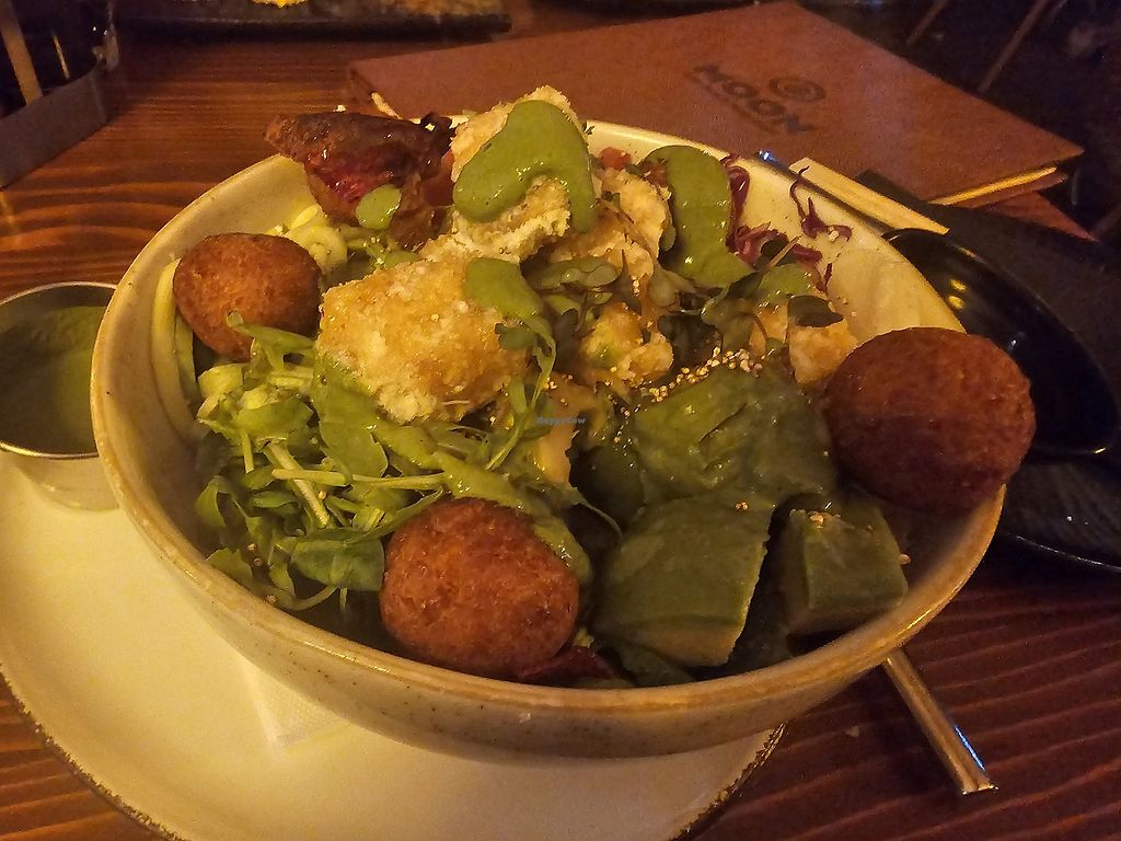 Very good food, with few vegan options though; but I got the Buddha bowl with tofu and the quantity was GIGANTIC. Also quality food. The staff was super nice and quick for serving. The only downside is that the place tolerates smoking, not pleasant when you eat.
