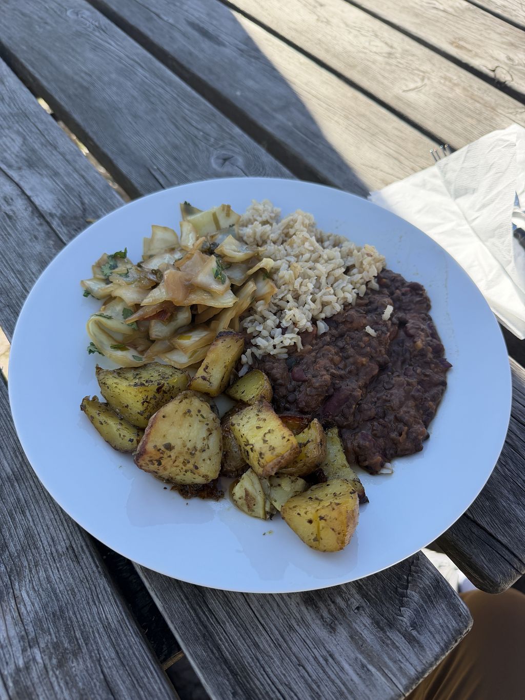 Lovely location and garden, and really positive vibes. The salads and hummus were great.