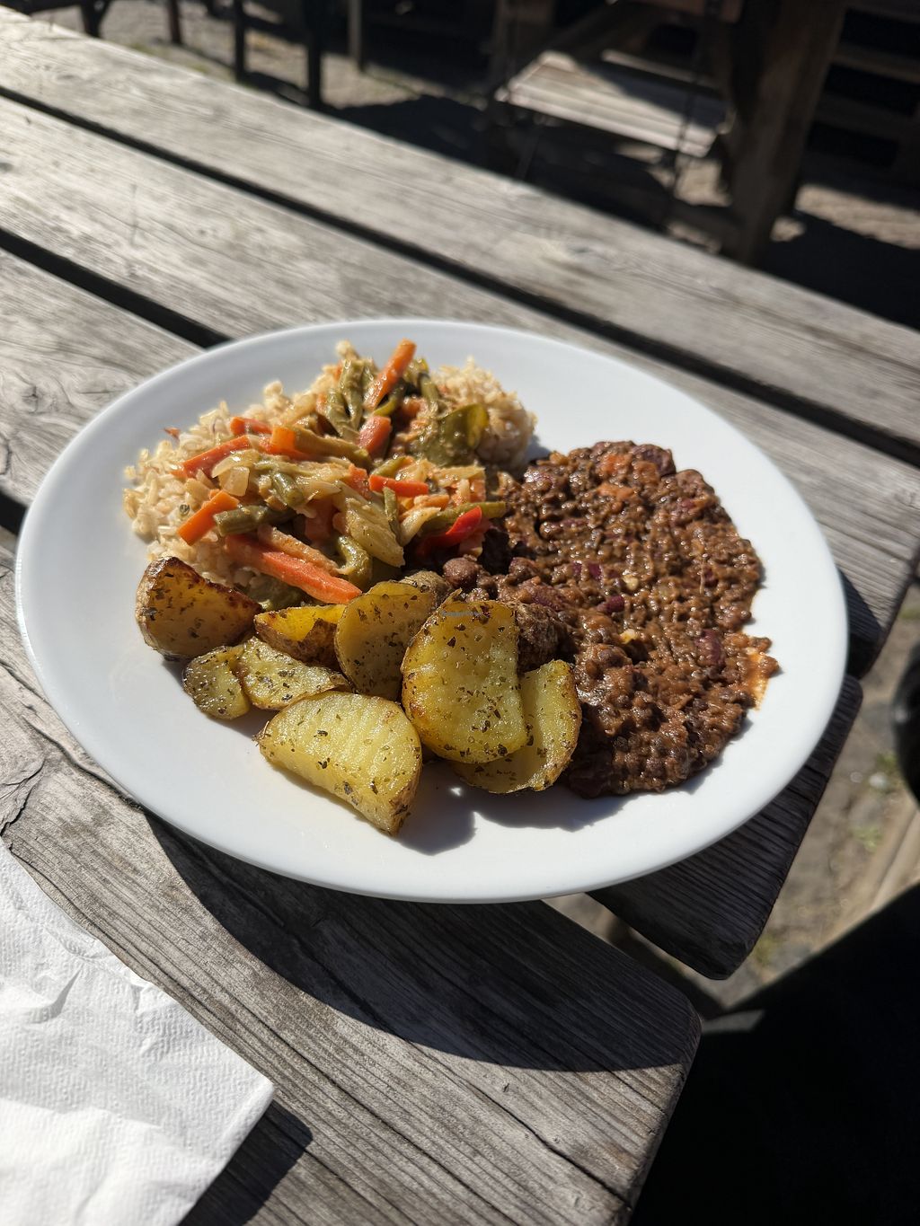 This place serves meet so that is why I have 3 stars. Otherwise the food was very good. It was simple and “normal life” food but tasty. The staff was also friendly and helpful. They had nice seating outside which was great. I was hoping this place would have been a bit cheaper than Copenhagen city restaurants but it was not.