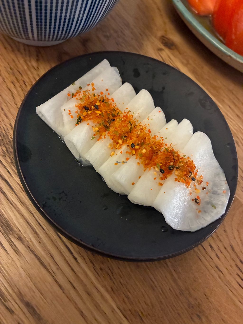 Hiyashi chuka (seasonal): cold noodles, roasted eggplant, tomato, cucu…