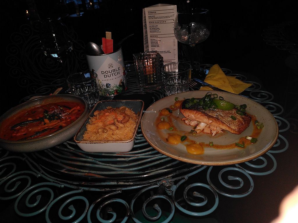 Wij namen het 3course menu: 1 voorgerecht, 1 hoofdgerecht, 1 side dish en 1 toetje. Alles was erg lekker, vooral de cauliflower in ranchdip. Er stond geen vegan toetje op de menukaart, maar wij kregen bloedsinaasappelijs met aardbei- en mangosaus en bosbessen. De cocktails zijn ook top.
