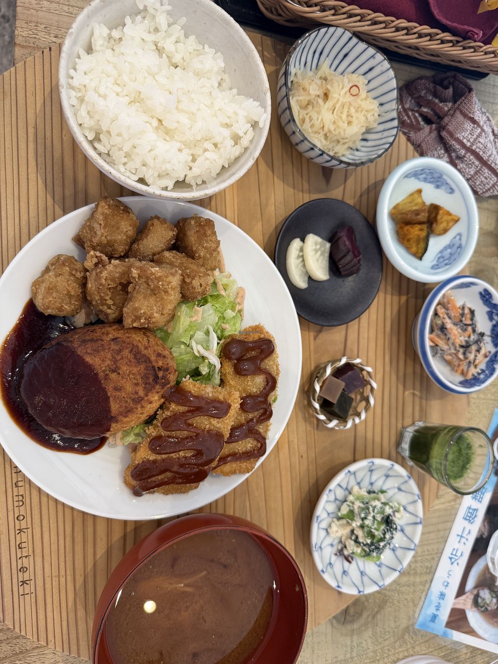 I was looking forward to dinner here after reading multiple great reviews, however the dinner sets my partner and I both ordered were very disappointing. The ‘meats’ seemed to have been fried in cold oil, leaving them soggy and very oily tasting. The side dishes that were pickled were good, but the rest was very bland or just tasted off. Honestly the best thing on the plate was the white rice. I would recommend going elsewhere while in Kyoto.
