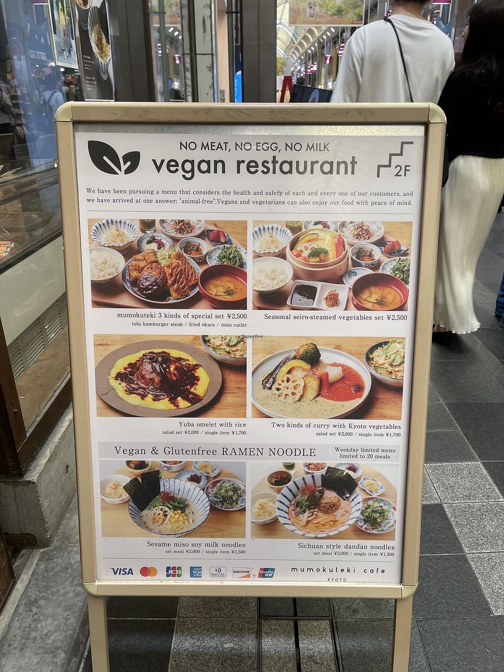 Vegan restaurant and cafe serving a large menu of Japanese specialities such as ramen, katsu lunch sets, omurice, curry, cake, parfaits, and more. Located on the Teramachi-dori covered shopping street. Enter through the Mumokuteki lifestyle store and go up to the 2nd floor. Has table, counter and armchair seating, plus a spacious area for families with children. Lunch is served all afternoon. Last order is 1 hour before closing. Open Mon-Tue 11:30am-7:00pm, Thu-Sun 11:30am-7:00pm. Closed Wed.