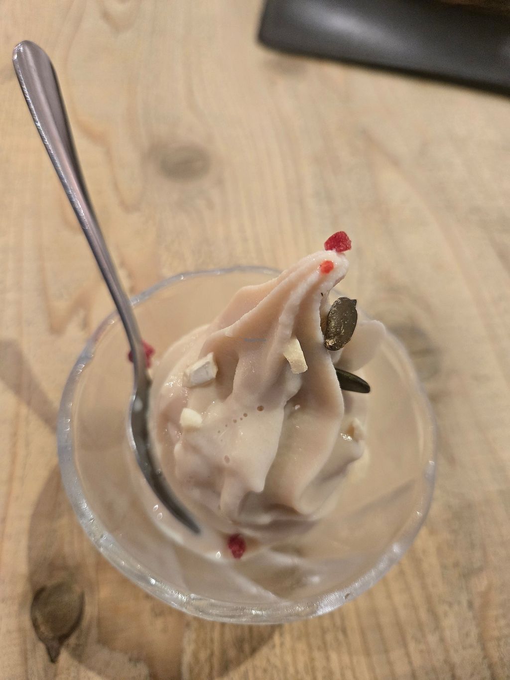 Got a platter with varied tofu dishes, was very tasty and filling.Unfortunately dessert was brought to us before the meal arrived . I chose to keep my dessert until after i had finished my meal which meant it had melted somewhat. Would recommend but maybe just for meal or dessert not both