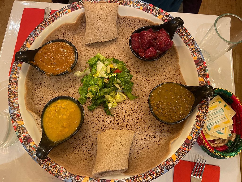 I have never had Ethiopian food before and this was an amazing first introduction! Went in with my omni partner, who got a meat combo and I got the vegan combo. Loads of choices, all clearly labelled vegan. Huge portions for a really good price, lovely atmosphere, will definitely be back and highly recommend!