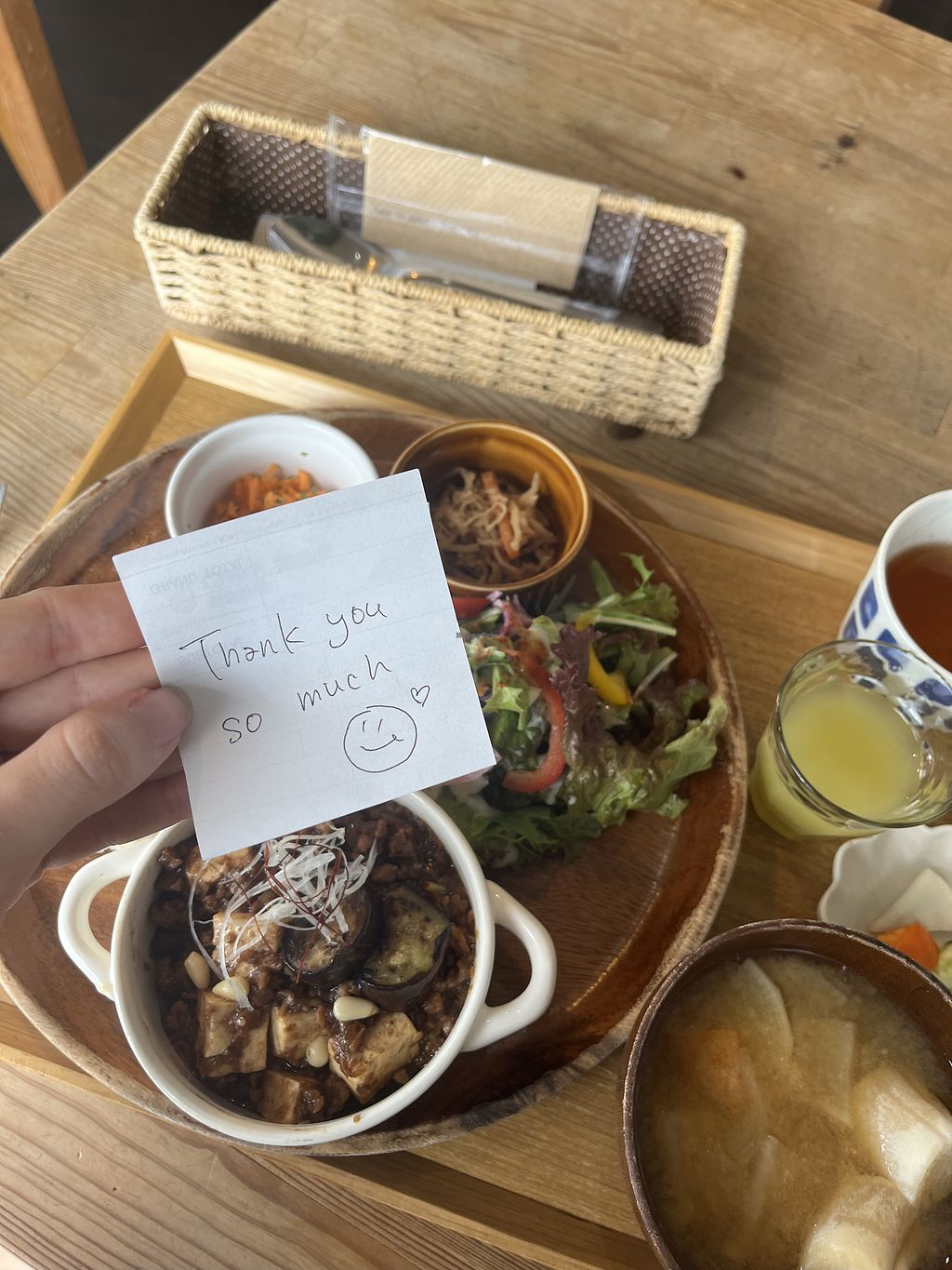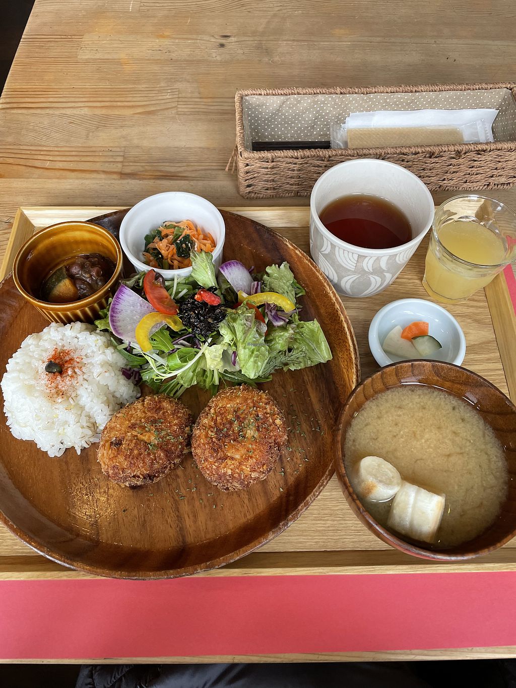 Had a great visit to Musubi Cafe, great location near the Monkey Park and a nice place for a quiet meal on a hot day. We day the daily special set (Fried Tofu set) with 2 sides, miso soup, side salad and tea & the taco rice set (tofu taco mince with rice, salad, tea, juice. Both meals were delicious and service was fantastic. We got 2 cakes to go berry yoghurt cake, matcha cake and a strawberry and cream ice cream sandwhich. All of this only cost ¥5800 which was amazing value for how much we got, this late lunch ended up leaving us not needing any dinner. Highly recommend a visit if you are visiting the area!