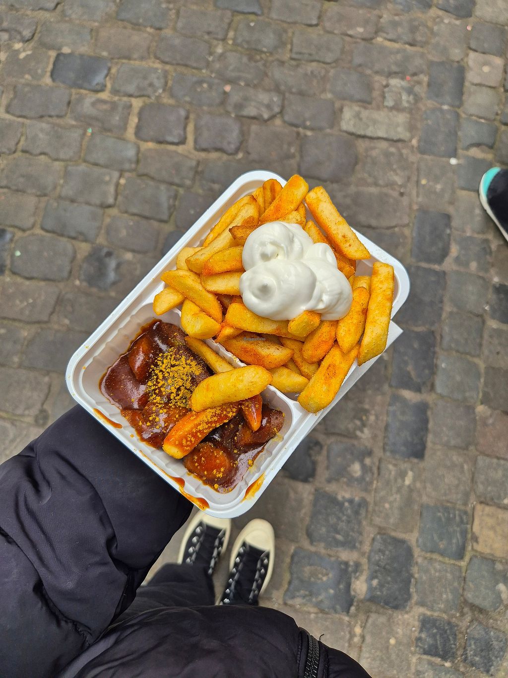 I had the vegan currywurst with fries. It was a quick snack and it was okay. They had vegan mayo, so that was a huge plus