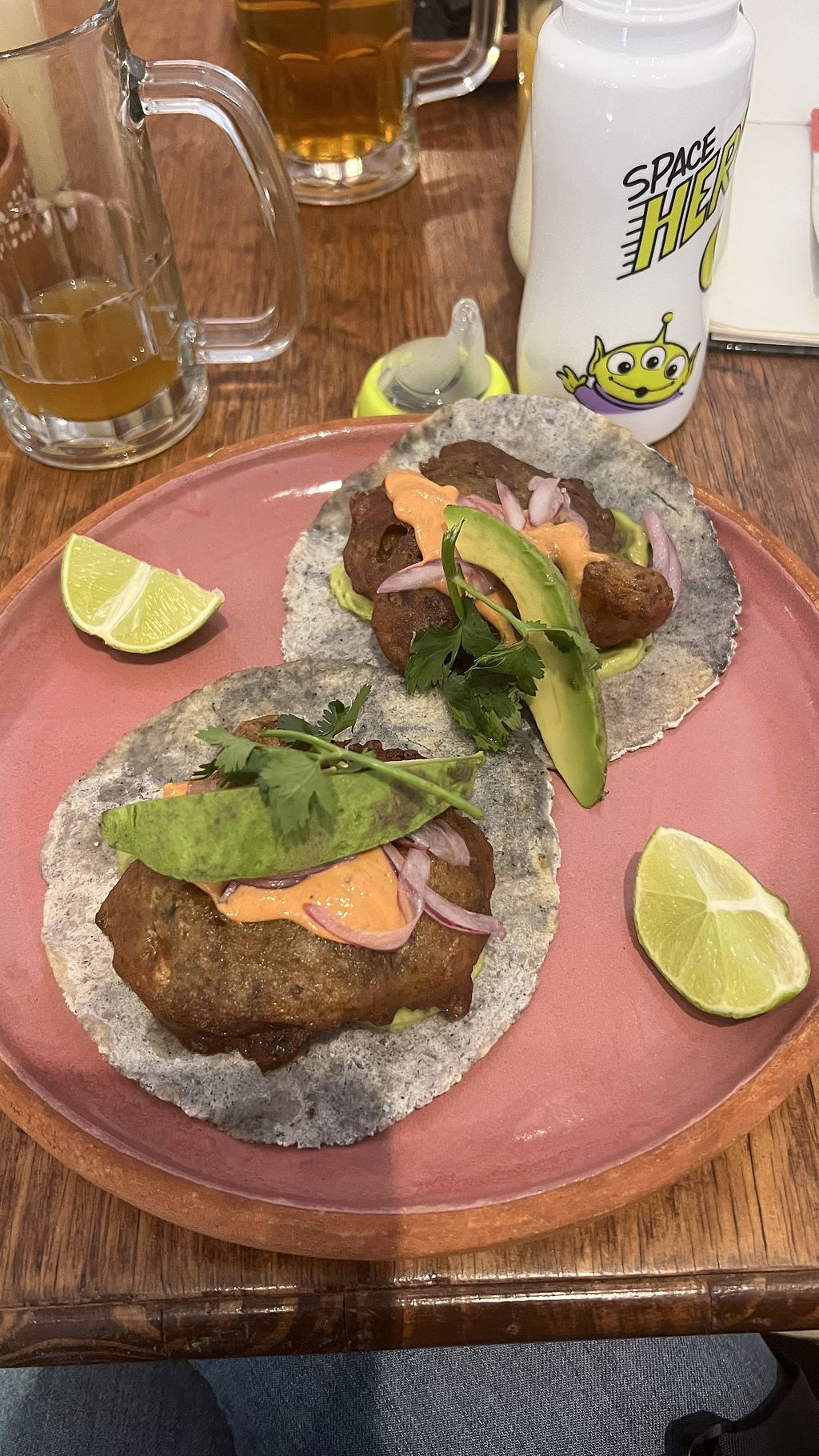 Wow, what a great restaurant, completely Vegan. Staff is extremely friendly, the place is super clean. Food was outstanding. They also serve you an appetizer courtesy of the house. I had too much food , but I ate it all. I wanted the Tacos but wanted to try the quesadillas as well. It was all very delicious. I will be back for the Tres Leches cake since I am full. It’s also not expensive for the quality you get.
