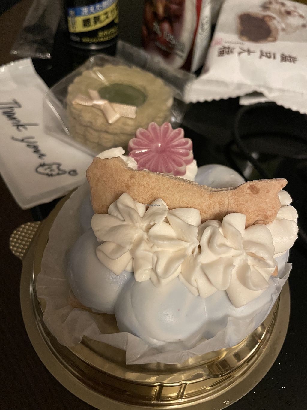 Dalle recensioni pensavo di trovare solo biscotti (che per altro erano molto buoni e anche belli da vedere, c'erano persino quelli a tema natale) ma in realtà c'erano anche tante torte, i prezzi forse un po' alti ma i dolci vegani in Giappone lo sono un po' tutti.... la ragazza che ci ha servito è stata davvero molto gentile e alla fine ci ha regalato anche un biscotto (forse perchè avevamo comprato molte cose😅🤦🏻♀️)