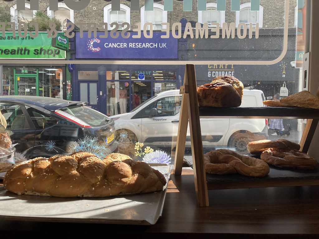 What a wonderful little bakery and cafe! As well as a wide range of cakes, pastries and sandwiches they also serve a couple of full meals such as a vegan breakfast with tofu scramble, vegan sausages, waffles, beans and bread. The vegan brekkie was one of the best I've had in ages, my only regret is that I didn't have enough room to try a dessert. They looked truly spectacular!