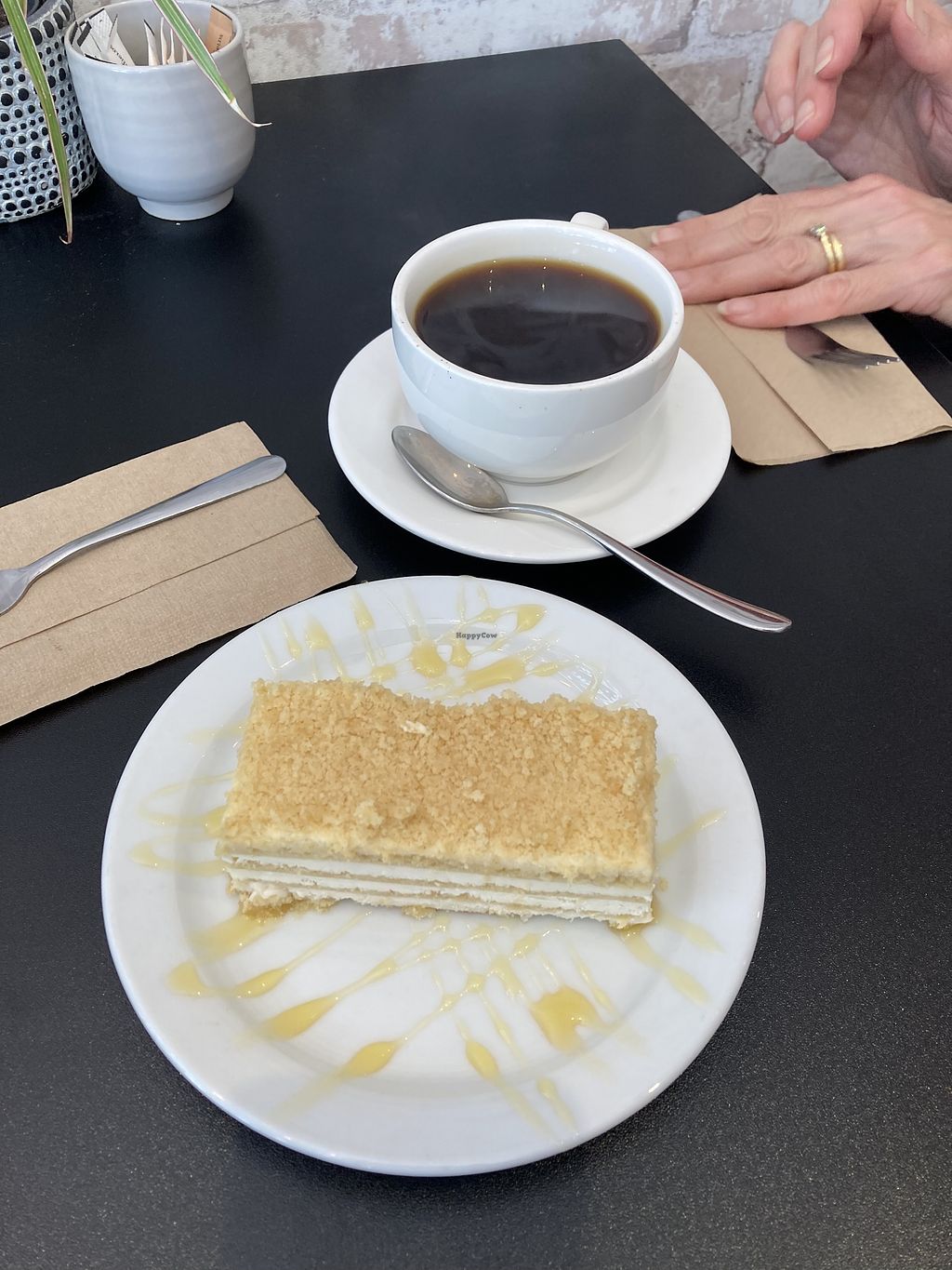 Some really good options here compared to the usual vegan fare, thought the kimchi and sausage sandwich and Herby feta sourdough were delicious and enjoyed the cakes and pastries too - good coffee as well, a nice little place for a sunny day lunch!