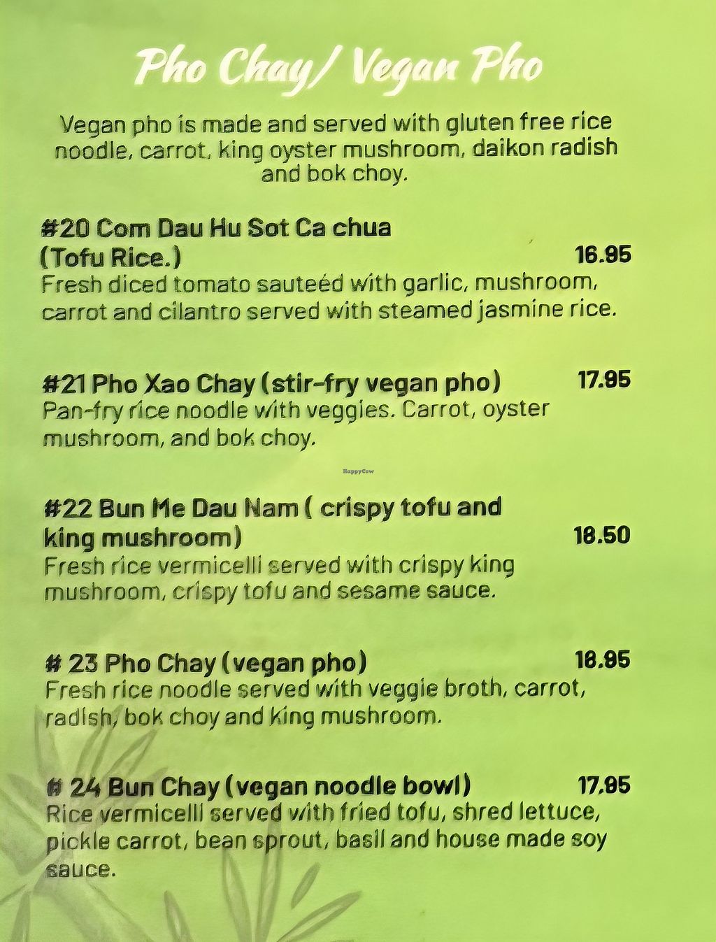 Serves meat, vegan options available. Casual, health-conscious, modern restaurant specializing in Vietnamese cuisine, particularly pho, with fresh ingredients. Family owned and operated by three brothers. Also known as Nam Bros Pho. Vegan choices may include pho chay, bun me dau nam (crispy tofu and king mushroom) and bun chay (noodle bowl). Open Mon-Tue 11:00am-9:00pm, Thu-Sat 11:00am-9:00pm, Sun 11:00am-8:00pm. Closed Wed.