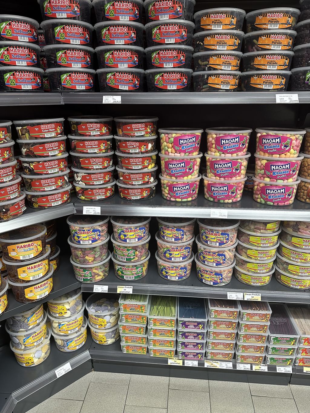 Wir waren dort, da der Laden für seine amerikanischen Getränke bekannt ist und stellten dann glücklich fest das es eine breite Auswahl veganer Weingummis, Bonbons u.Ä. gibt! Preislich vollkommen okay.