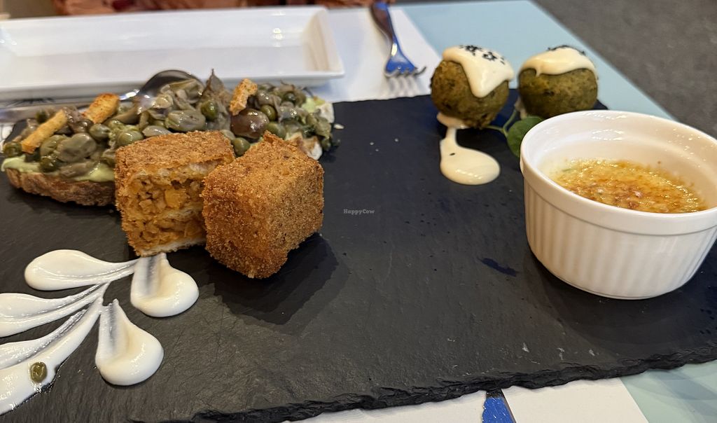 Delighted to have found this place. A fairly 'posh' vegan restaurant with some fairly traditional italian dishes and other really interesting creations. Lovely relaxed setting and fantastic attentive staff who made some great recommendations. It felt somewhere to go for a treat meal and yet also very good value given the quality. Between 2 we shared the appetizer tasting board, seitan marrakesh, canneloni, and peanut butter and salted caramel cheesecake. All were fantastic and we were stuffed!