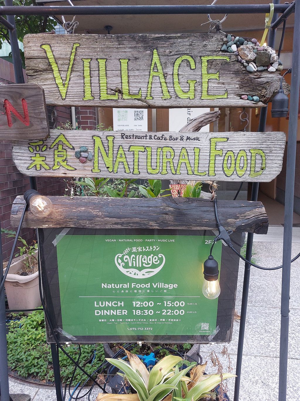 Natural Food Village is easy to find across from the Kyoto University of the Arts and on the same side of the street as the Kyoto Design College. It’s on the second floor with a signboard on the sidewalk and also is a music venue. If you’re visiting temples and gardens in northern Higashiyama, this is in the area.