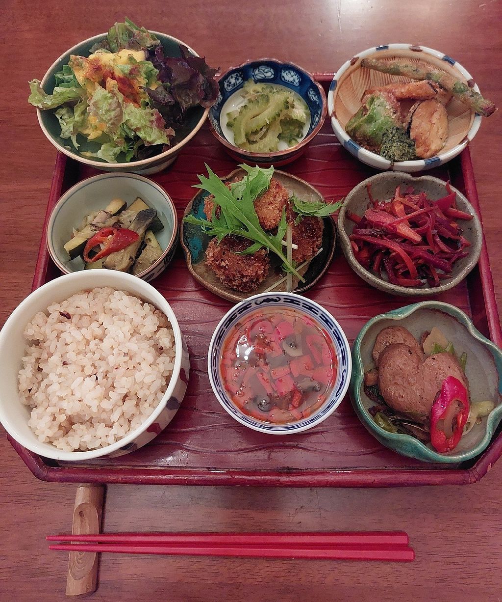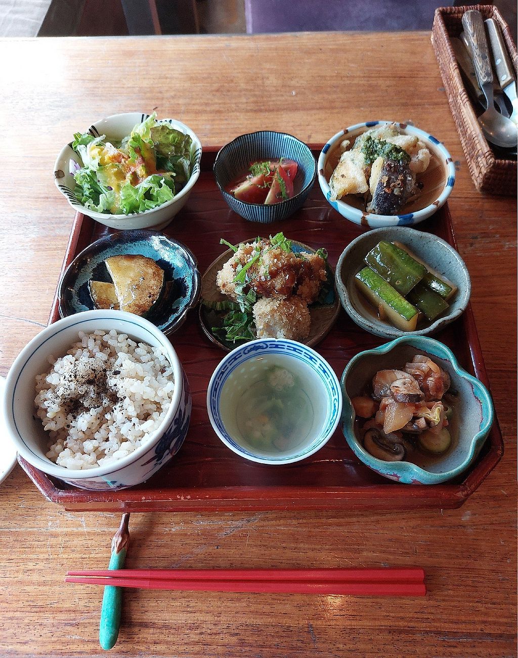 Est. 2001, the oldest vegan restaurant in Kyoto. Vegetables are purchased from nearby farmers. Music events and live performances. Has an English menu. Address: 左京区一乗寺築田町95 第一メゾン白川202. Open Tue-Sun 12:00pm-3:00pm, Tue-Sat 6:30pm-12:00am.