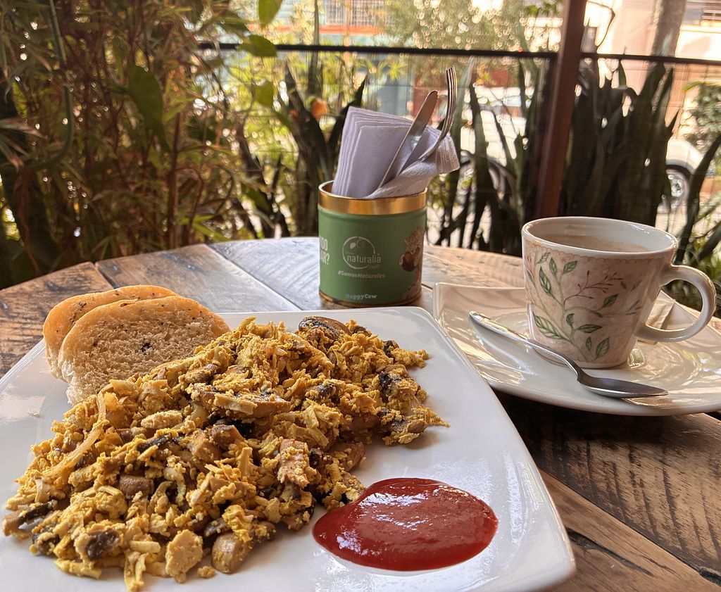 Espacio cómodo con opciones de almuerzo vegetarianos, veganos y carnívoros. También hay desayunos
