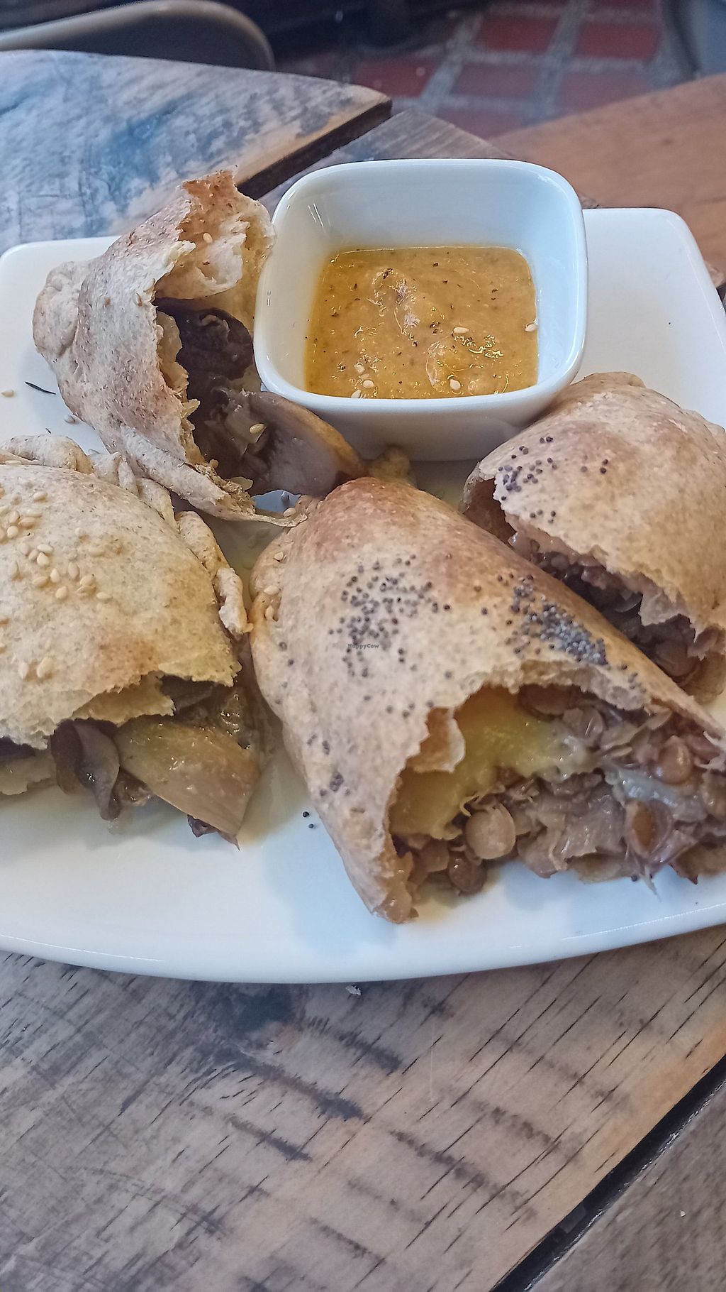 We had the lunch menu which they offer in vegan version, comes with rice salad, veggies and lentils.yummi! Vegan bread with jam made of Lulo!!! 👩🏽🌾👩🏽🌾👩🏽🌾👩🏽🌾 vegan starters available!!
