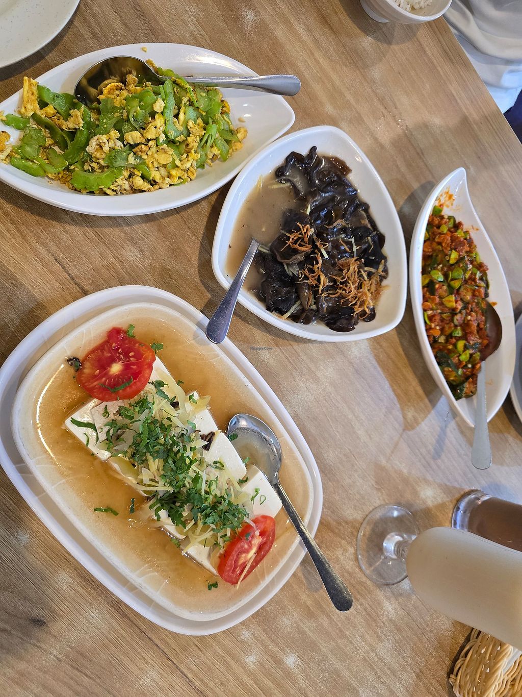 Tofu with Olive sauce - The olive sauce is salty on it's own but goes pretty well with the soft silken tofu. A must try!