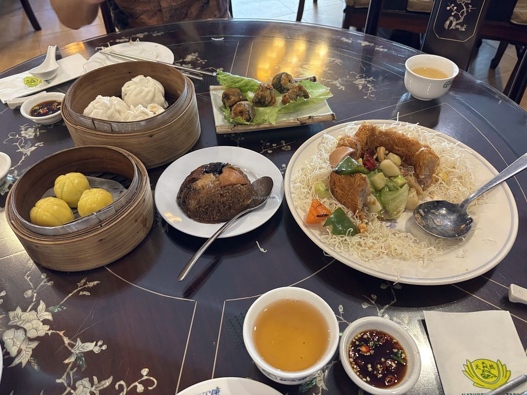 We unfortunately missed dim sum, so we only had a snack here of shark fin and crab soup, fried dumplings, and fried taro balls stuffed with vegan pork. It was tasty but I'll have to return to try what they are known for. The dinner menu is quite large with many Chinese stir-frys to choose from. Note that 16% is added to the bill (we didn't know, so needed to make a split cash/card payment).