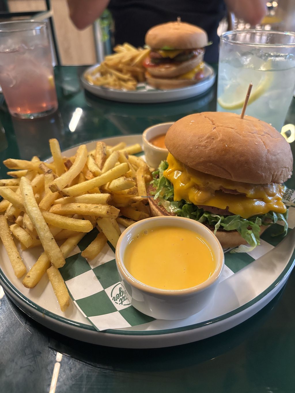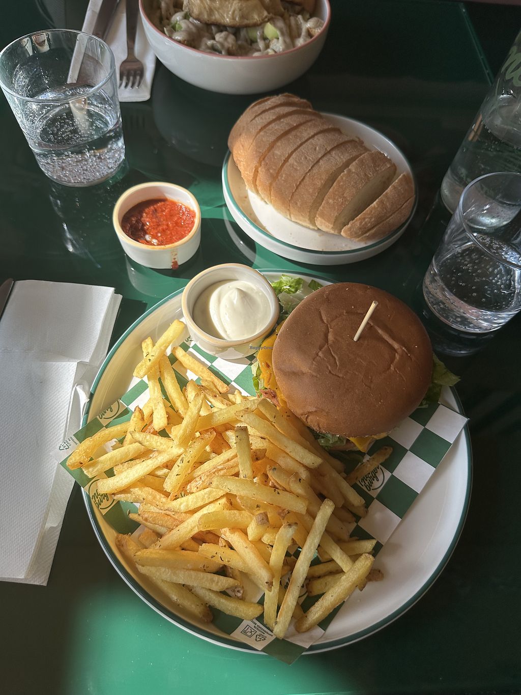 Great location, bright and cozy space. Burgers are very tasty. The caprese salad was fresh and delicious, despite they had run out of pesto dressing.