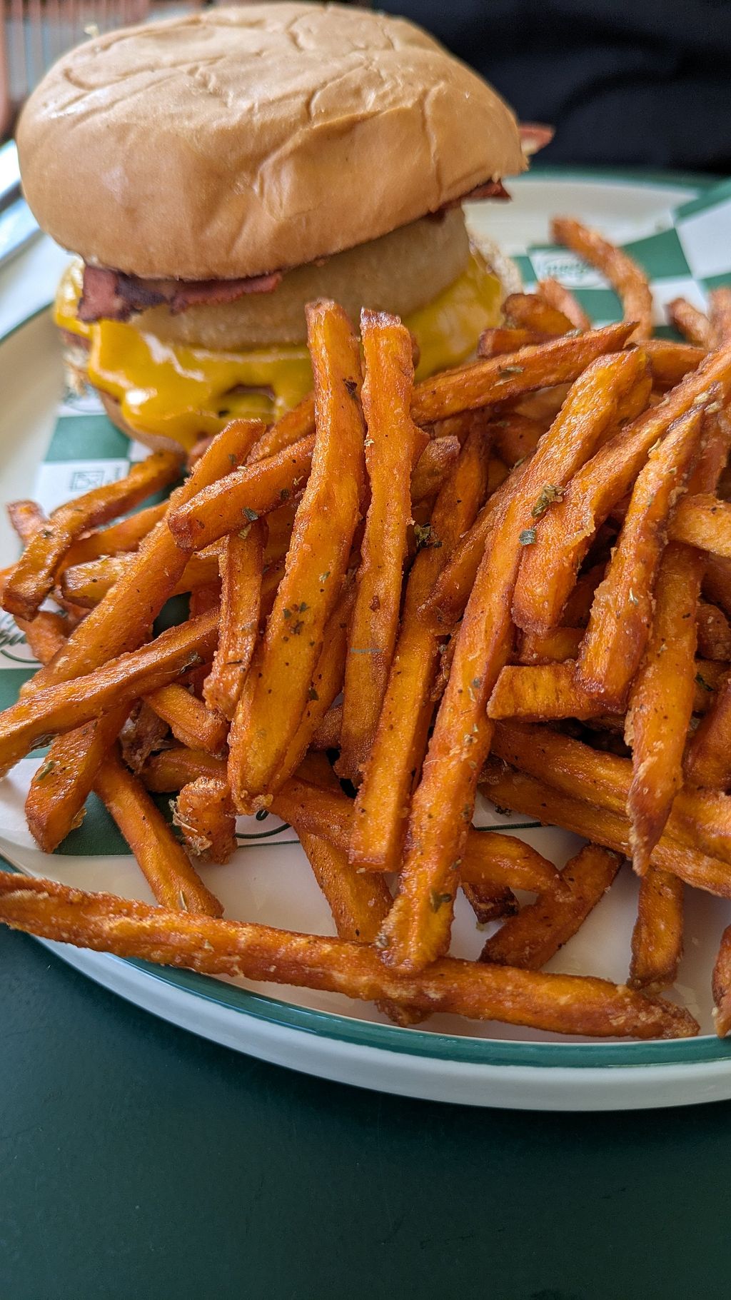 From the watermelon juice to the double BBQ burger, the jalapeno-cheese bites, the perfectly baked sweet potato fries to the tiramisu....we loved it all. Our dog was immediately welcomed with a fresh bowl of water and some dog treats 🫶🏼