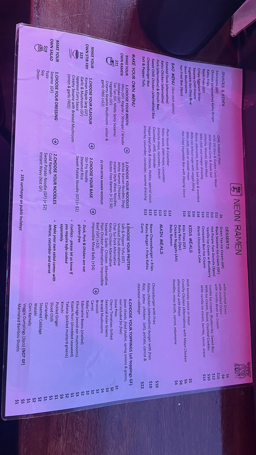 Neon ramen is my go to place when looking to go out and have a delicious vegan dinner, they staff are so friendly and the food is so yum. Highly recommend