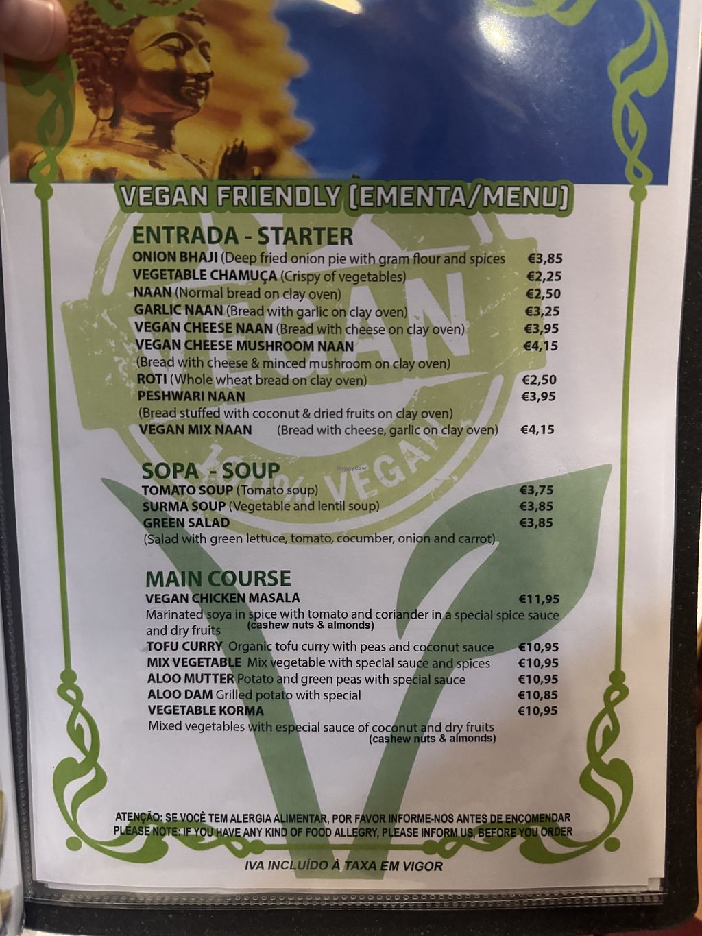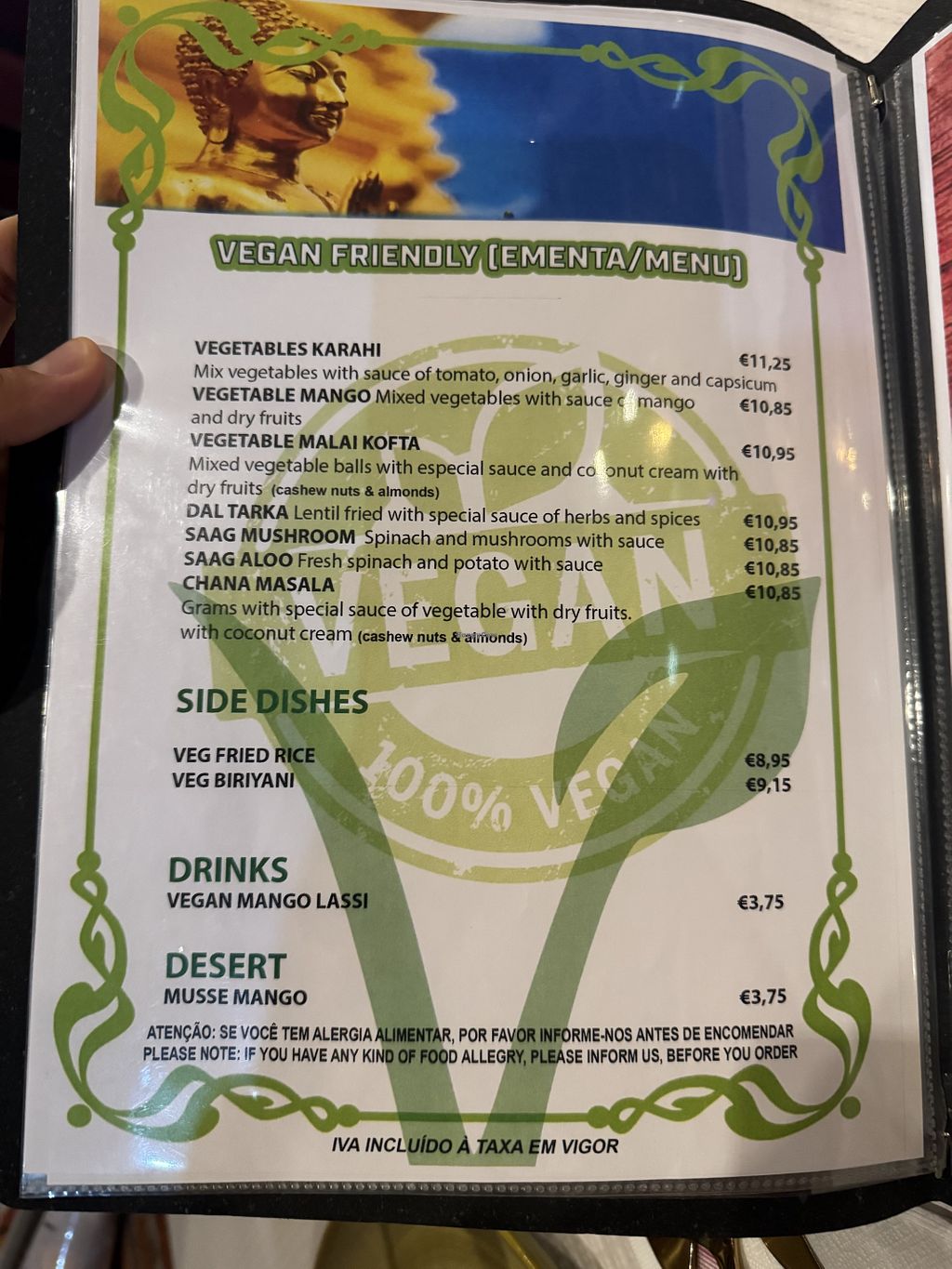 We ate here on the night we arrived in Lissabon and this restaurant had great reviews and was near our stay. I do not have a lot experience with Indian cuisine but this was so good, so sad there aren’t a lot Indian restaurant with vegan menu. We ate vegan chicken masala and the curry, fried rice and we had the ‘cheese bread’… tasted really good. So good we wanted to go back the next day, but choose to try another place. But when you visit Lissabon, go here!
