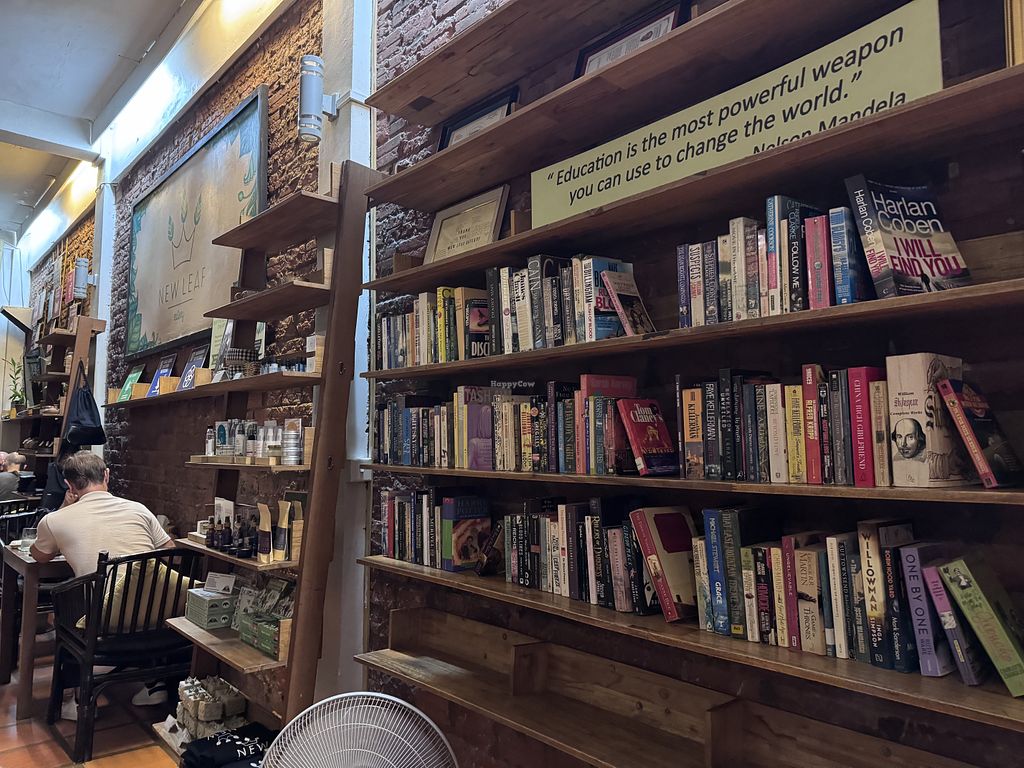Serves meat, vegan options available. Social enterprise cafe and restaurant with a good range of vegan and vegetarian dishes: breakfast, appetizers, salads, soups, mains and desserts - ask for the vegan menu. 20% of profits are donated to local education projects and 15% of profits are shared amongst staff team. Has an extensive shelf with donated books for customers to read. Also sells a number of environmentally friendly products (bamboo toothbrushes/straws, reusable containers). Food and utensils are locally sourced, and used cooking oil is donated to make biofuel. No disposable plastic used, drinks are served with metal straws, serviettes have been replaced with cloth napkins, as well as cloth towels instead of paper towels. Open Mon-Sun 7:00am-10:00pm.