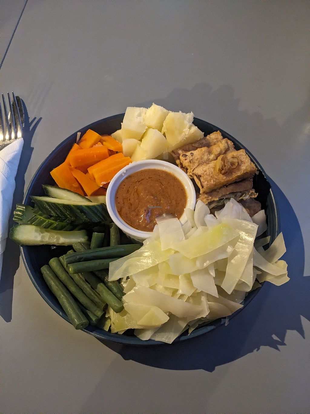 Love the iced Kopi Susu (latte with palm sugar) Food options are tasty. Gado-Gado is a good portion size