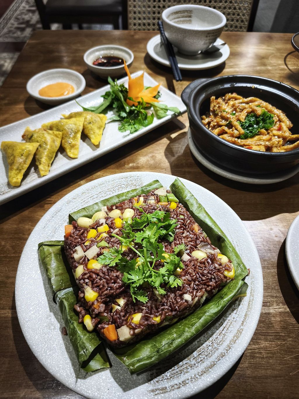 Read moreThe menu had a decent amount of options, and well pictured to know what you're getting. I chose the rice steamed in banana leaves, the shredded tofu in sesame and lemongrass, and the wontons.
