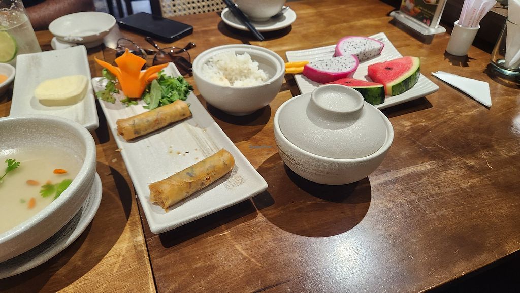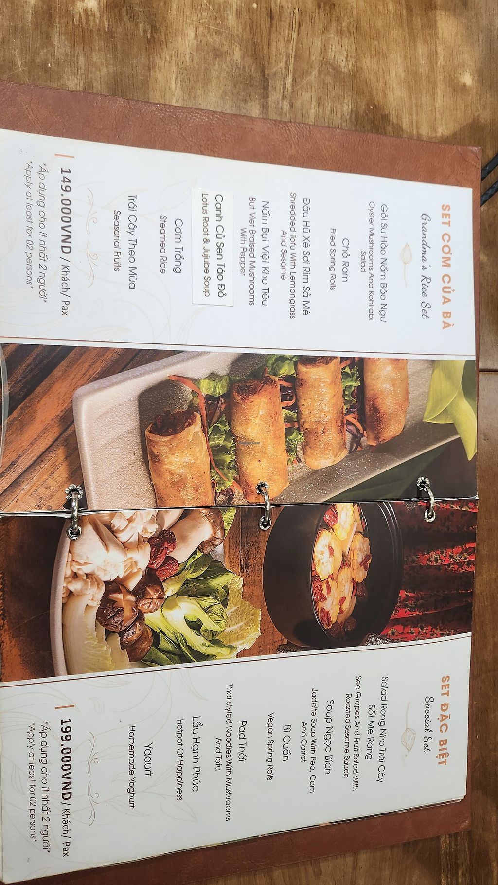 I'm here from Australia with my Vietnamese wife. We've been touring with her family. I was dropped off here while they ate elsewhere. I had the salty, chilli rice; "meat" pieces; and the stuffed tofu wrapped in tofu sheets done in a smooth sauce. Definitely the best vegan meal in this part of Vietnam. At AU$12, I could eat here every day.