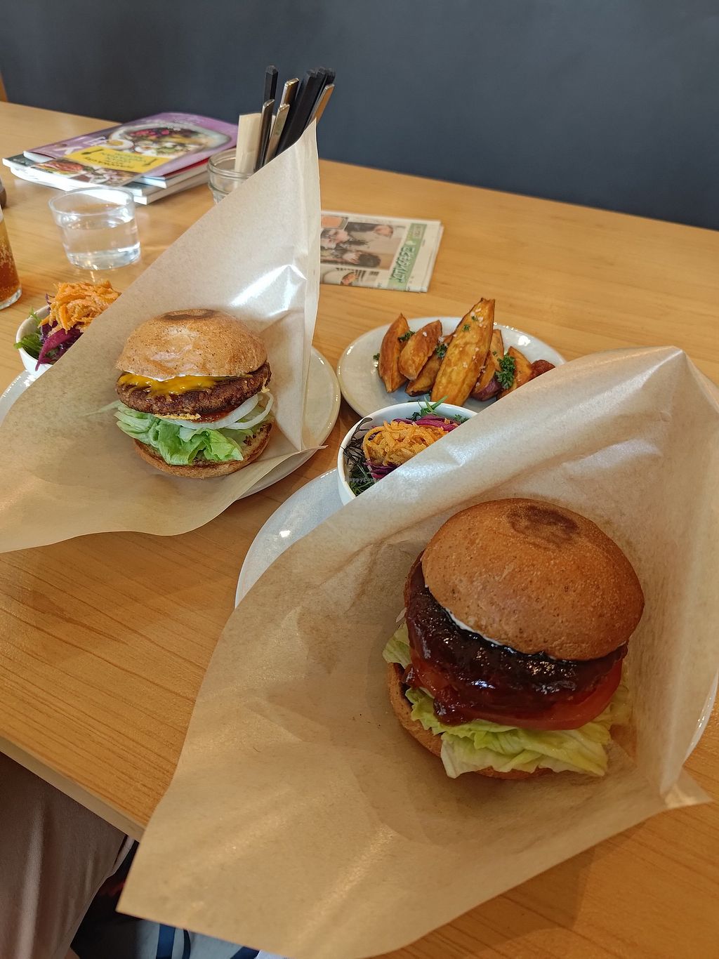 This place is well worth visiting in Fukuoka as one of the few fully vegan dining options. The burgers can be served as a 'plate' with salad etc or in a bun. All the food tasted fresh and my burger plate came with a huge variety of delicious salad and vegetables. The purple sweet potato fries are the best!!!