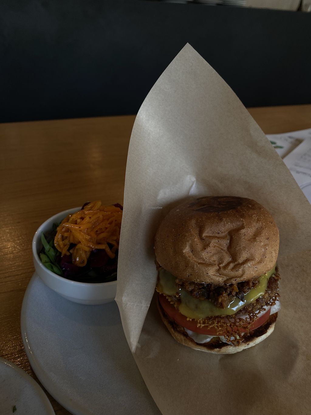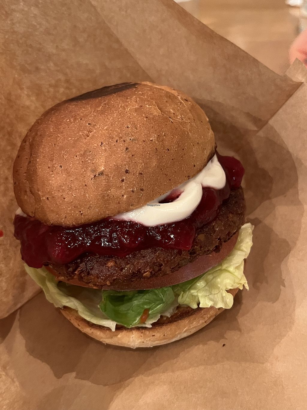 Delicious burger! Not safe for people with nut allergies as the patty is made from walnuts.