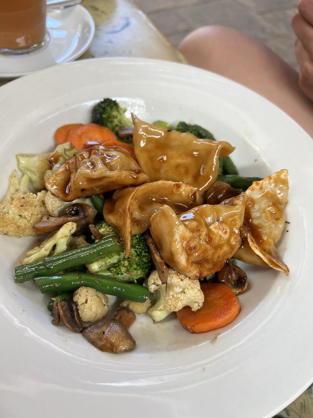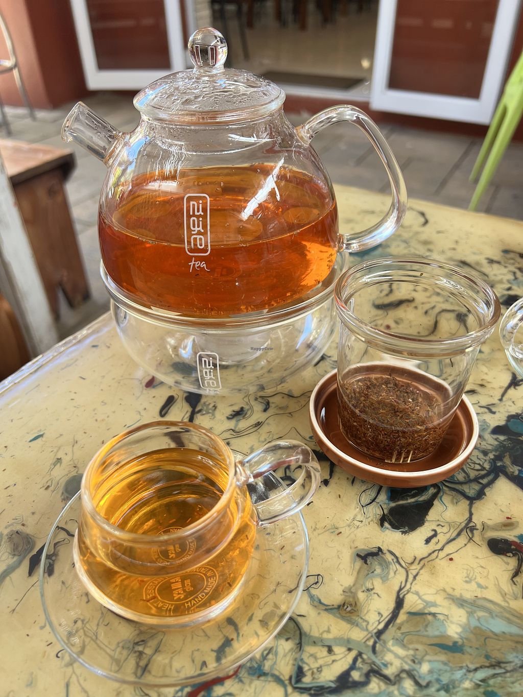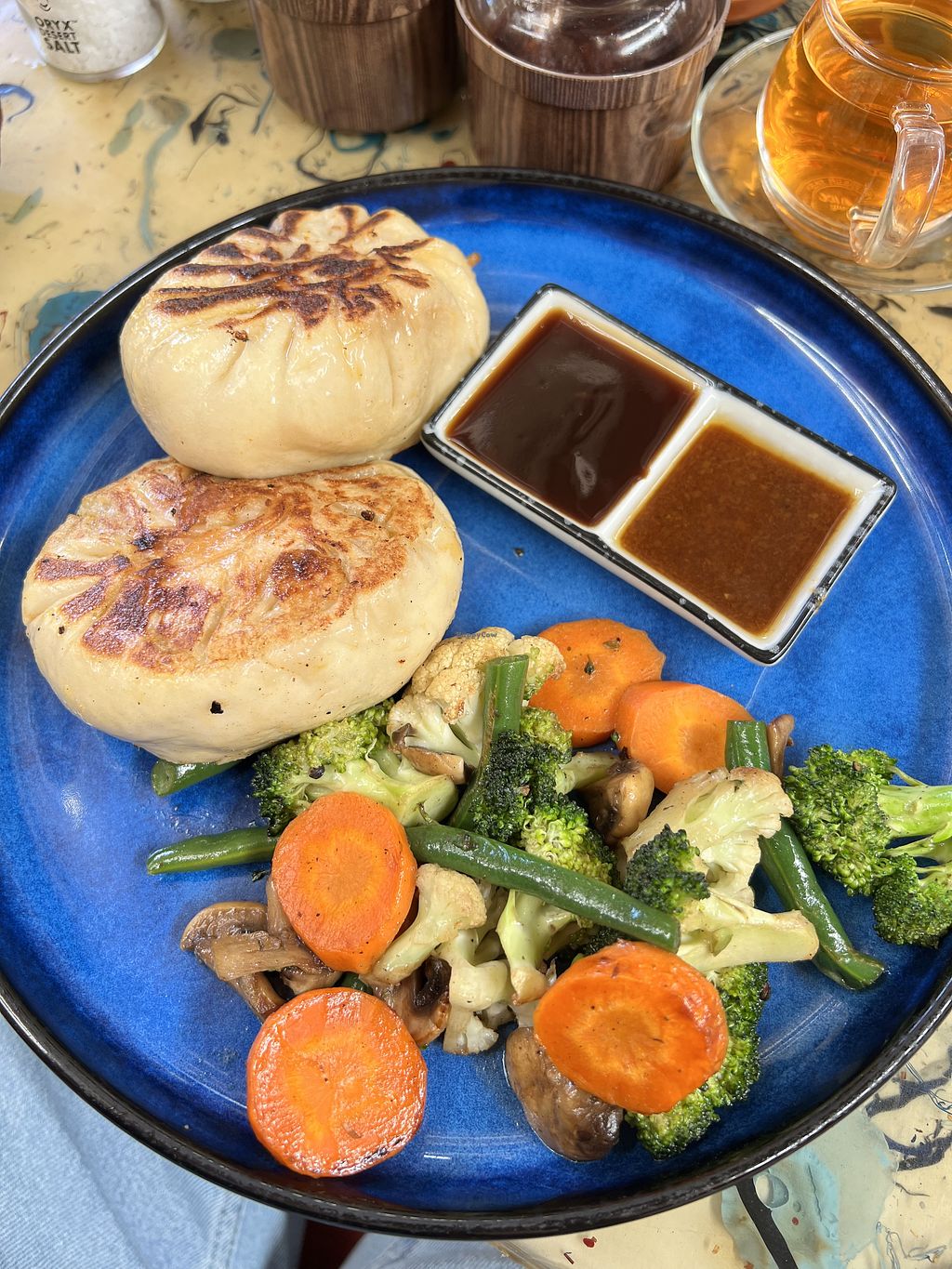 Calming ambiance (indoor and outdoor seating), dog friendly, exquisite vegan options, great service, and even a shop with food you can take home, lots of trinkets, kitchen gadgets (not just tea-related, although there is plenty of that).. will definitely come back!