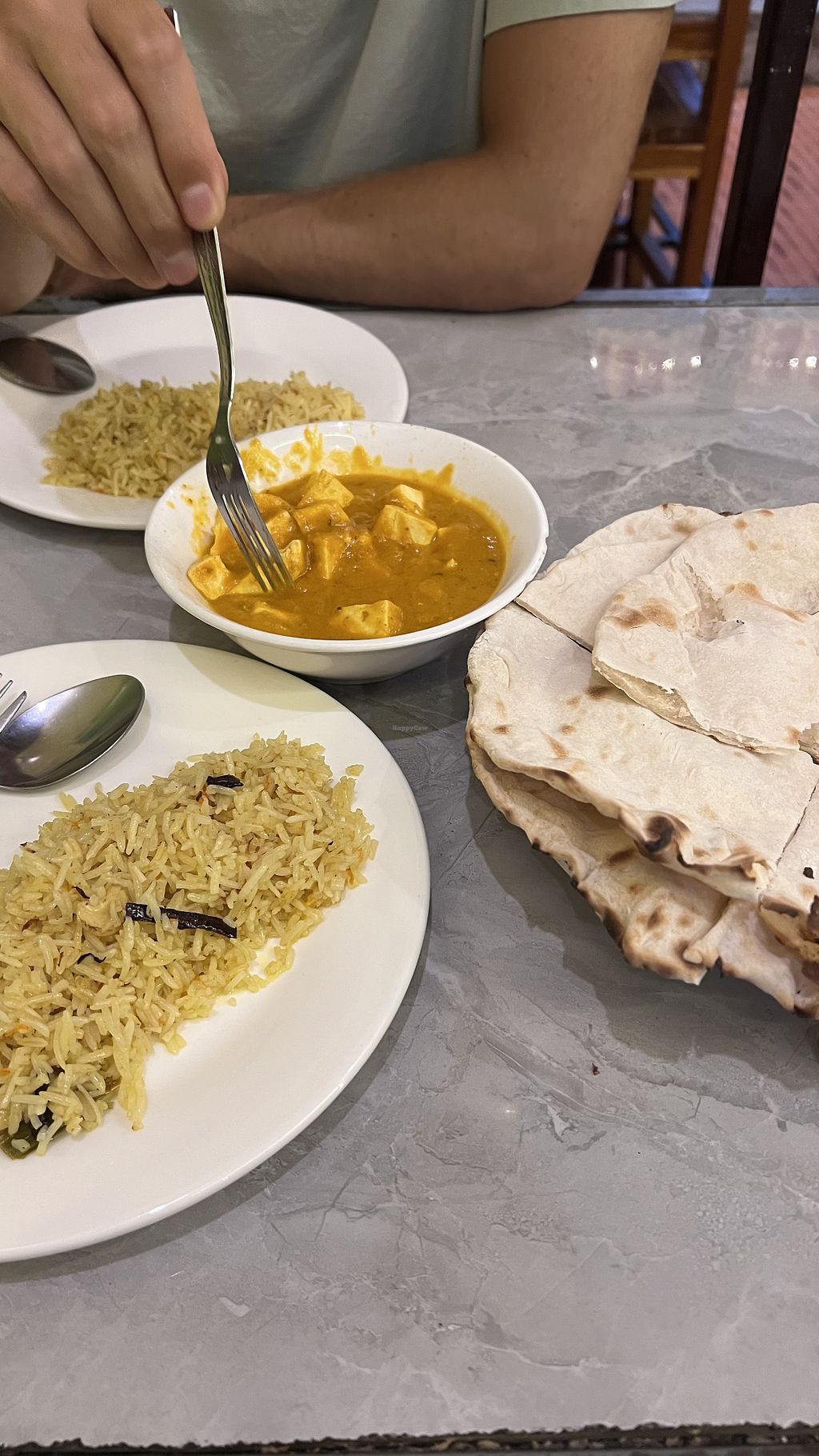 Nice curries, even gave me vegan garlic naan (apparently 🤞)!