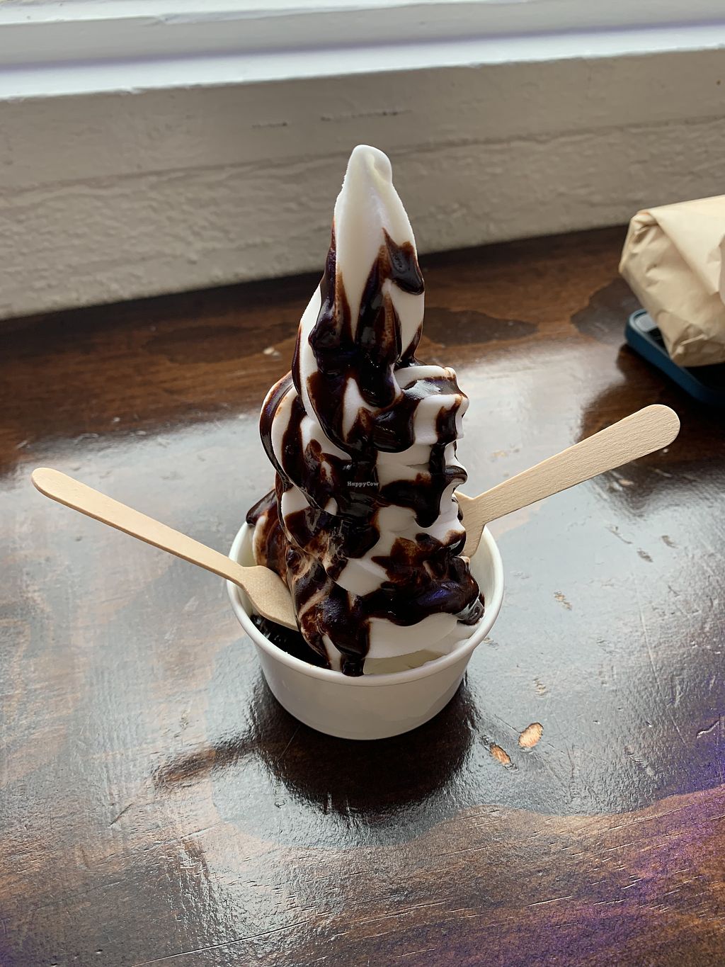 Delicious and all vegan soft serve! And they have plenty of toppings and add-ons, like nuts, pretzels, marshmallows, oreos😄