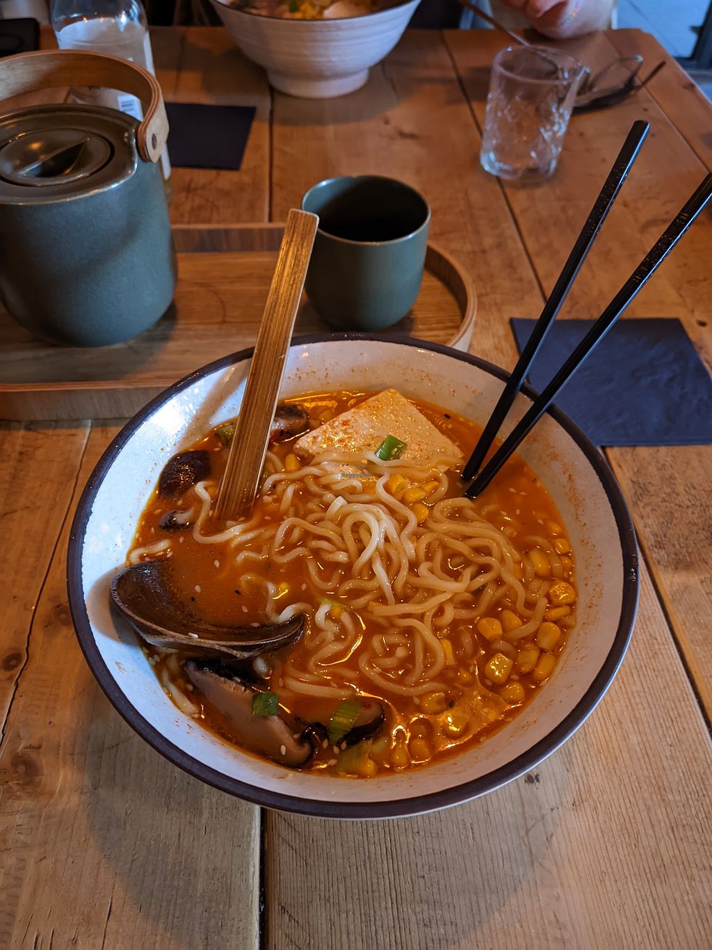 Read moreThe place is quite small and was fully booked when we arrived, but we (2 people) got two single tables next to each other and could later change to a bigger one. The place offers vegan gyoza as a starter and two different vegan ramens which you can get with either miso or tonkotsu broth. I tried the gyoza and the vegan tofu & shiitake ramen in the tonkotsu broth and it was really good. Just not completely sure about the corn but otherwise it was very flavourful with big pieces of mushrooms.