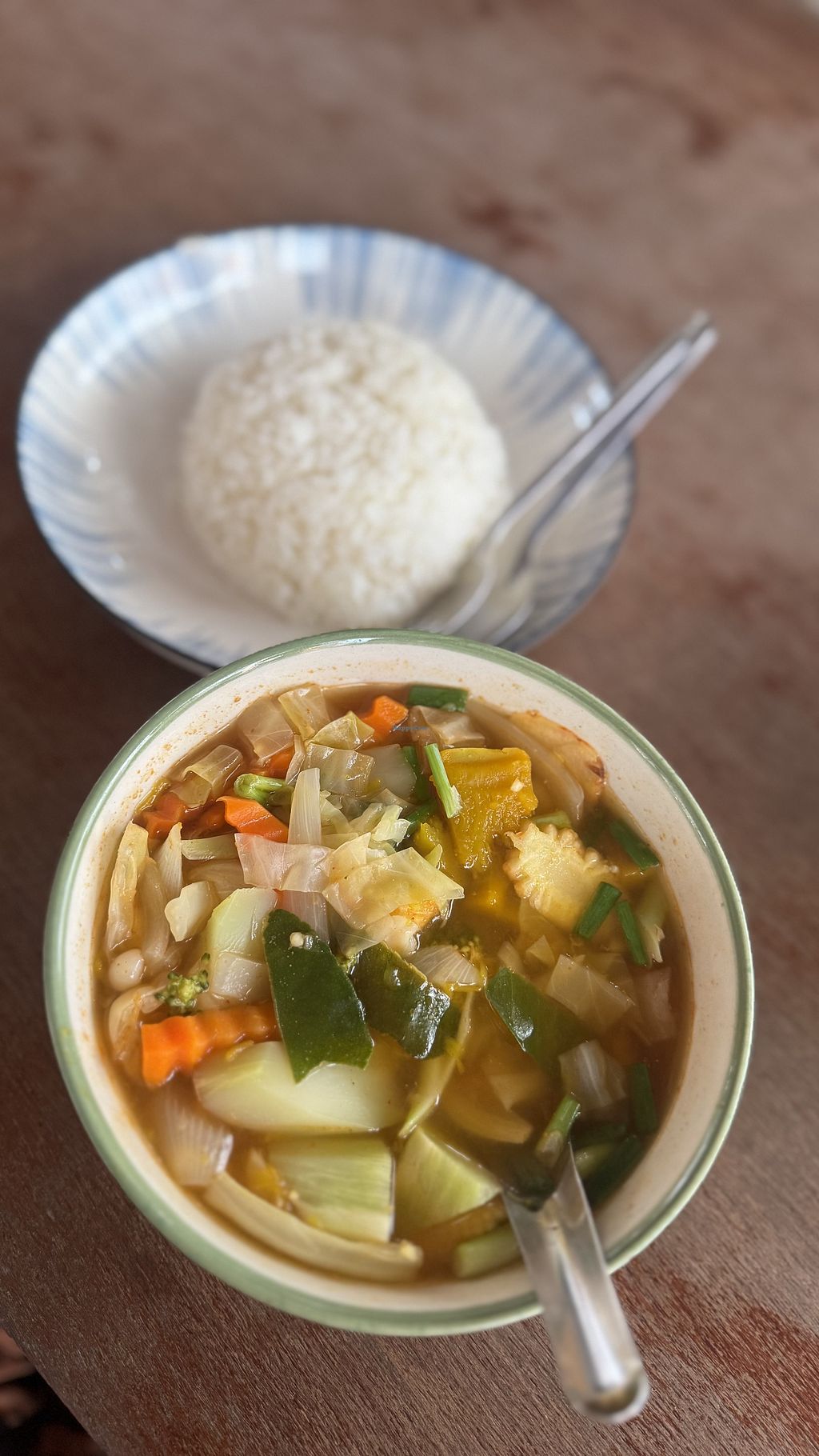 Ordered glass noodle salad (70B) with tofu (10B) and veggie pad kee mao (70B) which was not in the menu but they made it anyway! Liked both a lot. Salad was fresh and full of cabbage, lettuce and tomato..! Not that spicy at all, but still nice flavour. Pad kee mao was nice and spicy! Tofu was crispy but lacked flavour. You could add seasoning from the table and when mixing it into the portions I didn’t mind it.. Big portions and lovely family running the place!