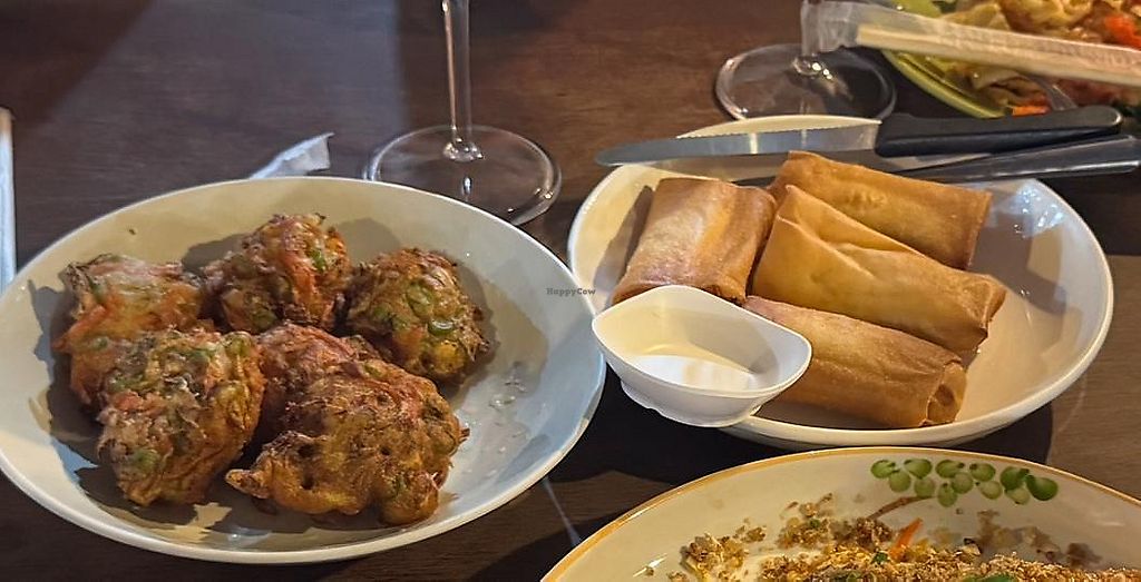 the food is freshly prepared. even the spring rolls are made fresh. There is an ectra page in the menu for vegetarian options.