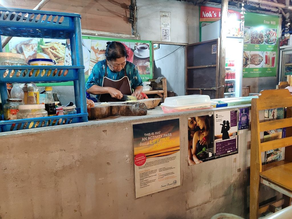 Run by Nok and her husband it offers an alternative to the rather pricey restaurants here.