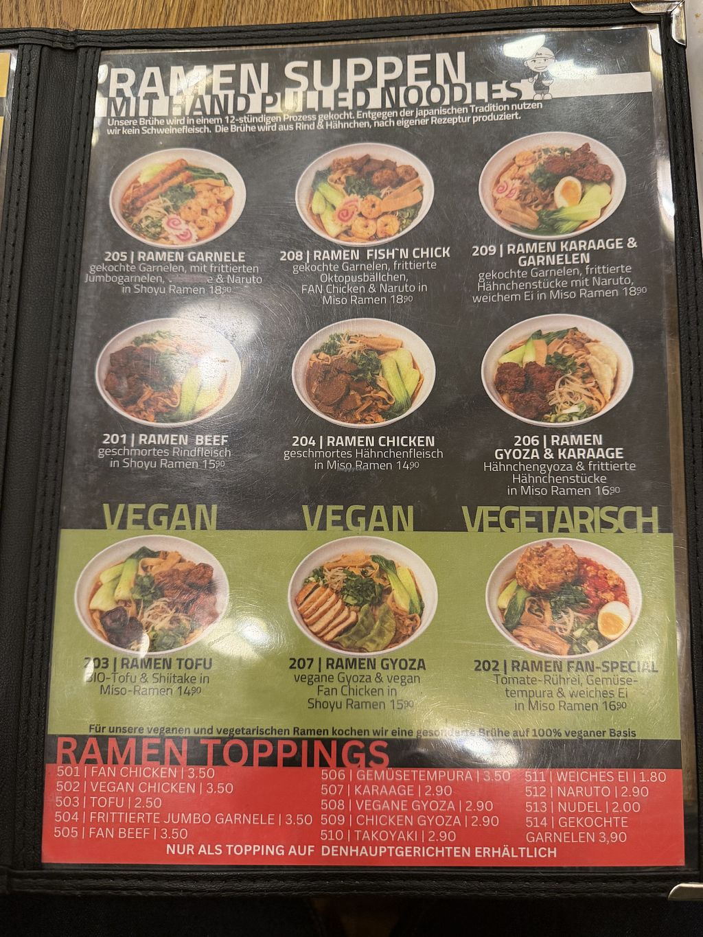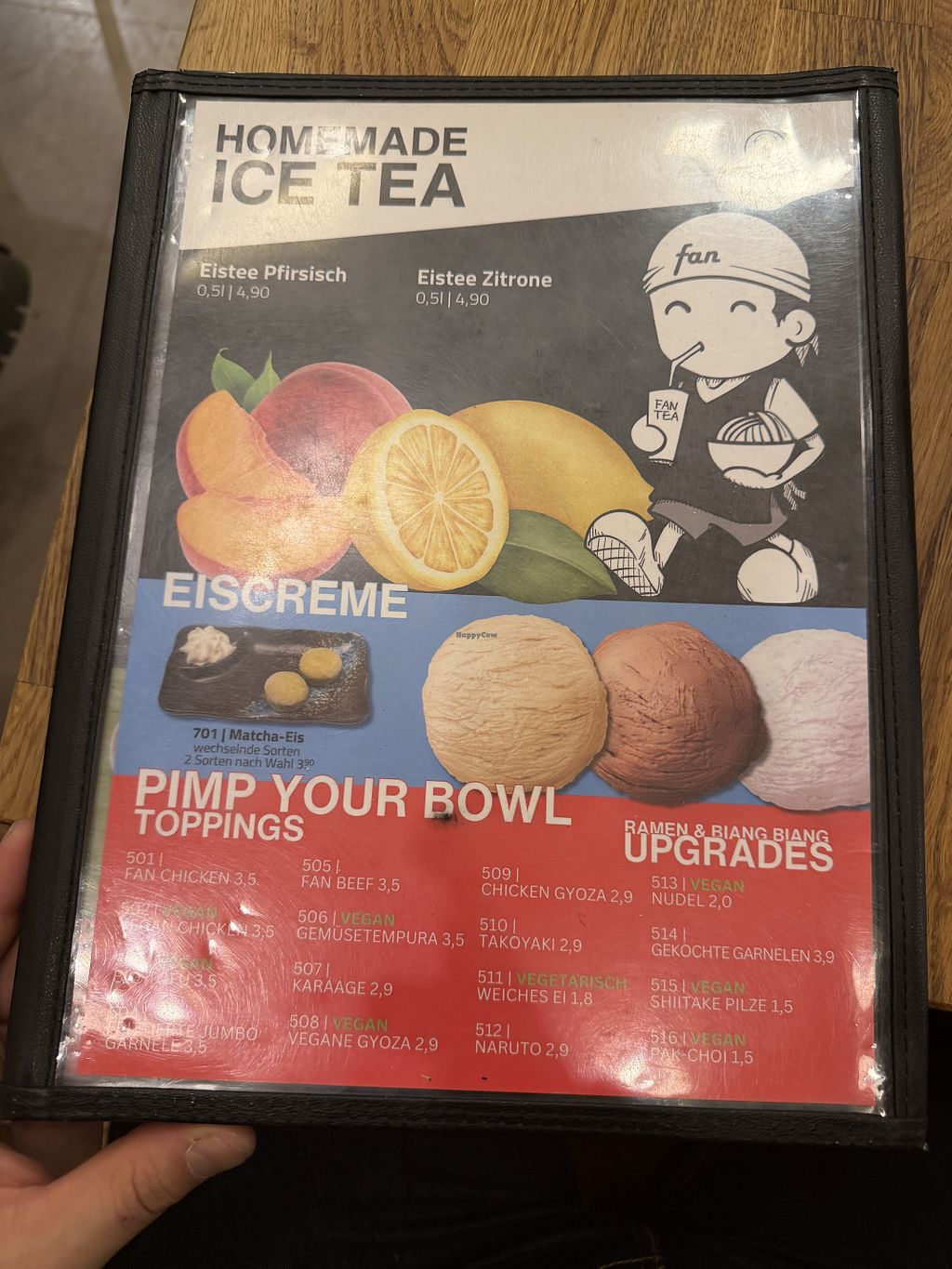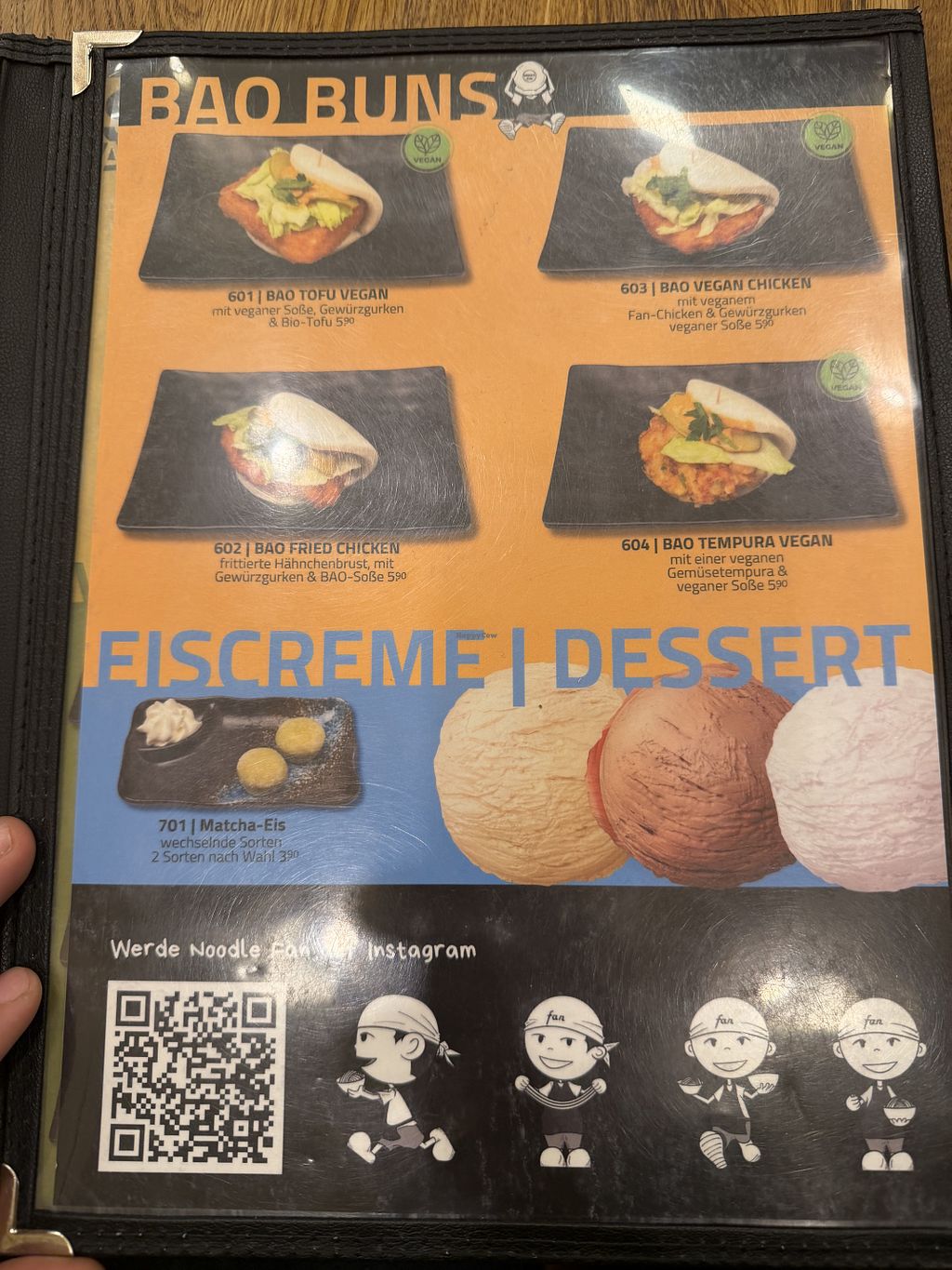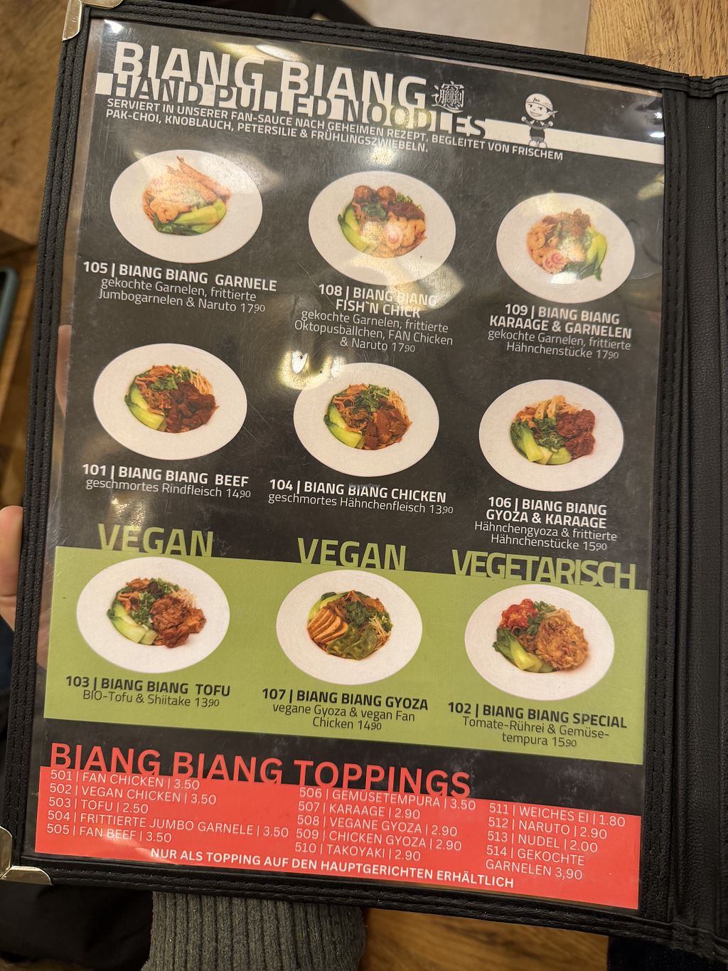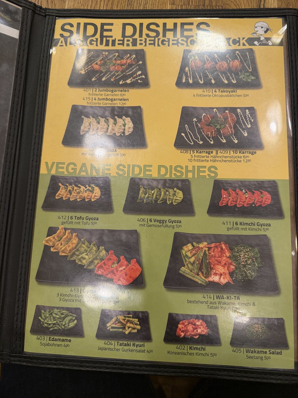 Ein paar vegane Optionen👍 Die veganen Tofu Nudeln und veganen Gyoza waren sehr lecker😄
