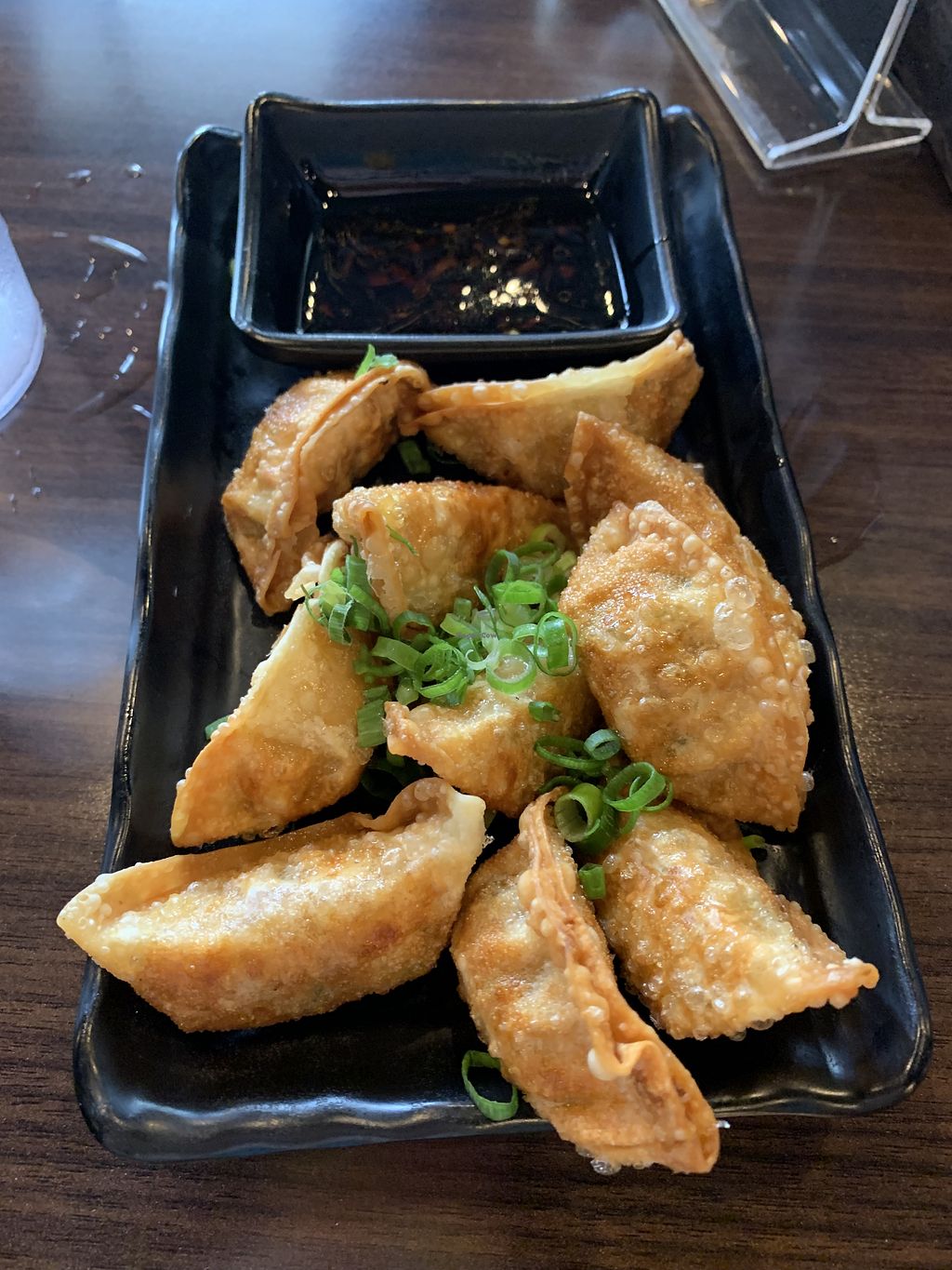 The entire vegan menu looks delish. Had the black garlic ramen and kimchi potstickers - both so tasty. Wish there was some protein in the bowl, but the toppings were still generous!