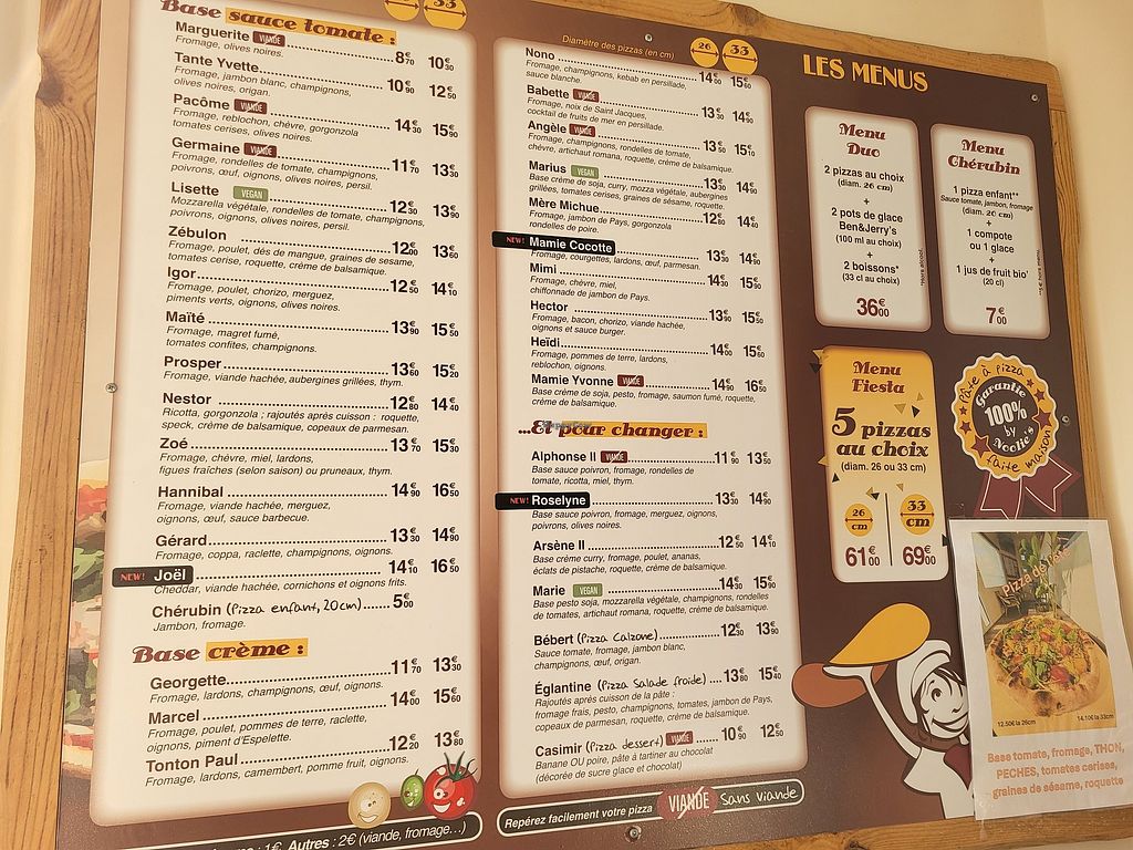 Nous avons commandé à emporter les pizzas veganes Lisette et Marius, elles étaient très bonnes, une préférence pour la Marius !!