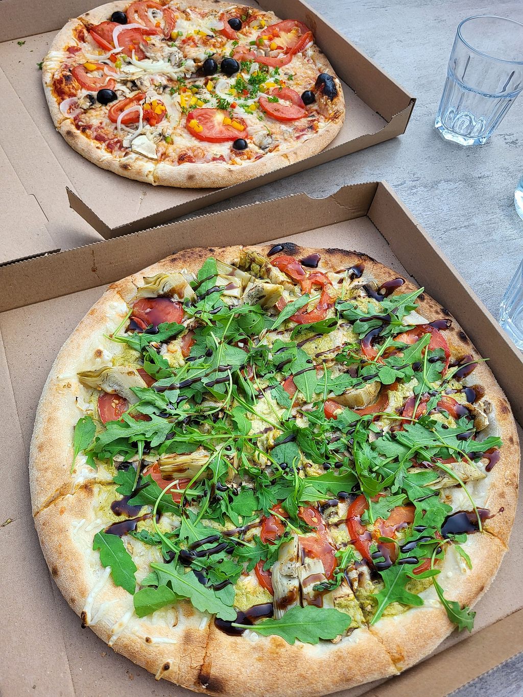 We took out the 2 vegan pizza's they have (the Marius and the Lisette) to eat them at the beacht. (it turned out to be quite a long walk so would recommend going by bike or car 😉)