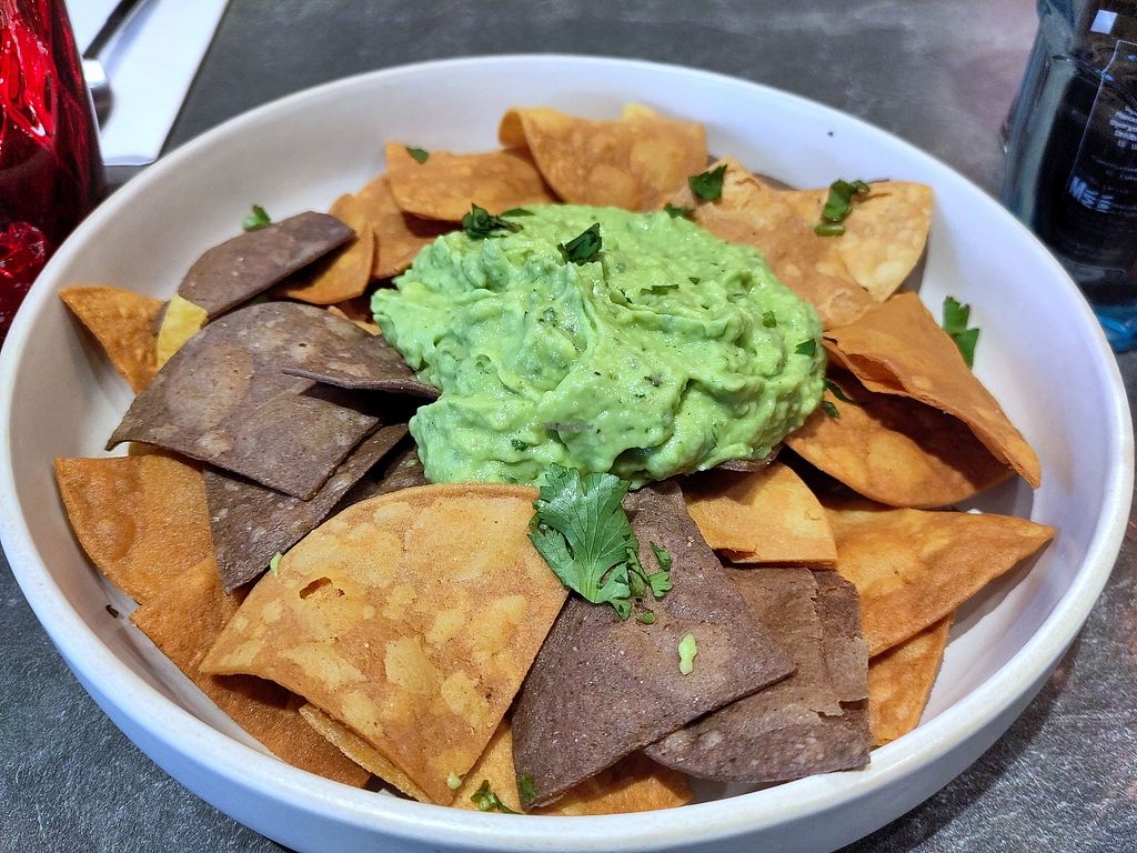 Serves meat, vegan options available. Mexican restaurant & bar serving tacos, salads and sides. Note that vegan items are not labeled so you need to confirm just in case. Vegans can have the 'tacos de jardin' as a main, and the guacamole and frijoles as sides. Other dishes can be made vegan upon request. Plant-based milk is also available for drinks. Open Tue-Sat 12:00-00:00. Closed Sun & Mon.