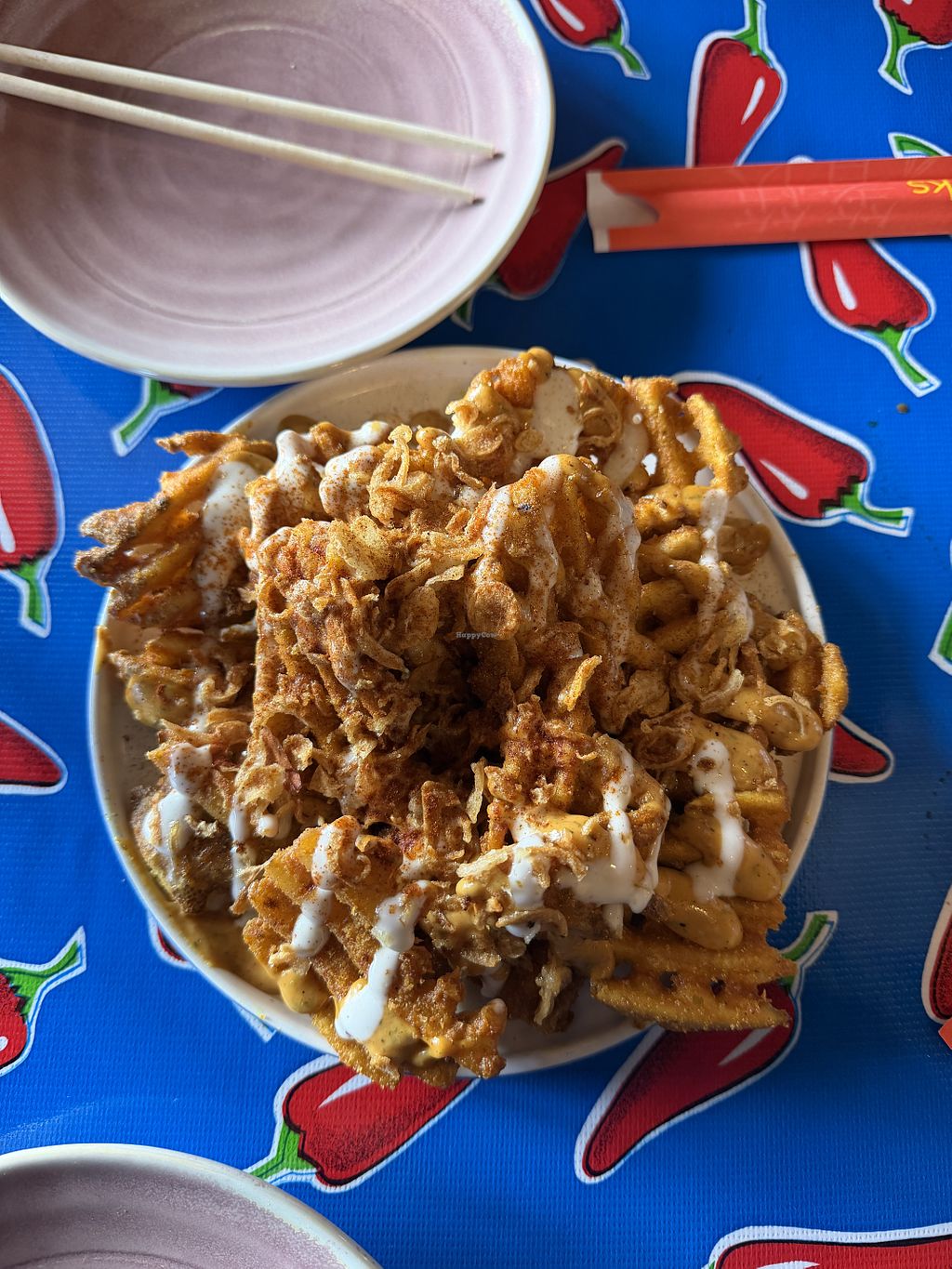 i tried the thai basil tofu/tempeh/soy curl and the cauliflower curry dish and really enjoyed both. also tried the rangoons, which were one of my favorites before i went vegan so i was so excited to try a vegan rendition. highly recommended.