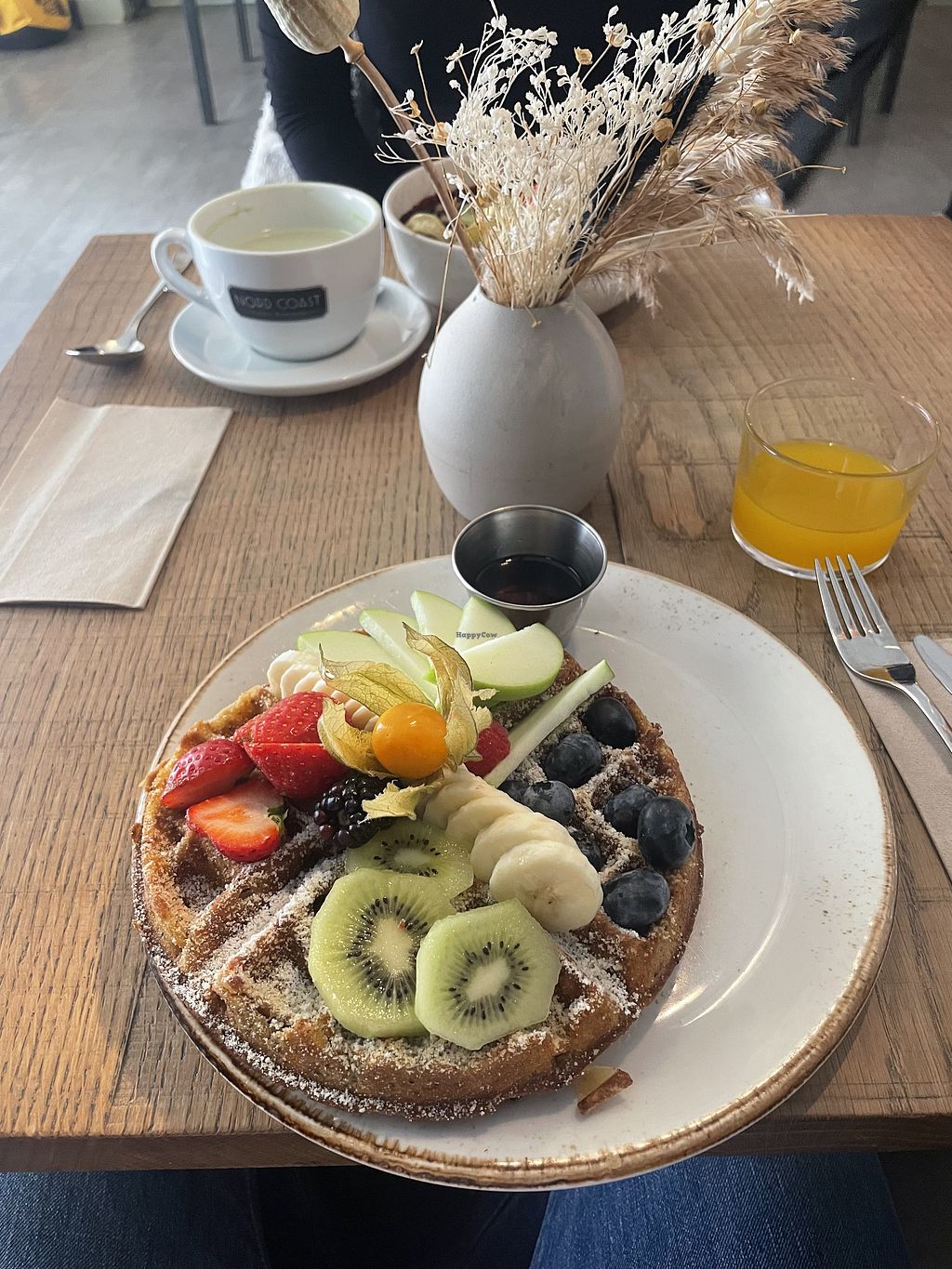 The waffles are really good, very crunchy and beautifully plated. We had to wait quite long to be seated, but it was worth it. Wish it was fully vegan though.