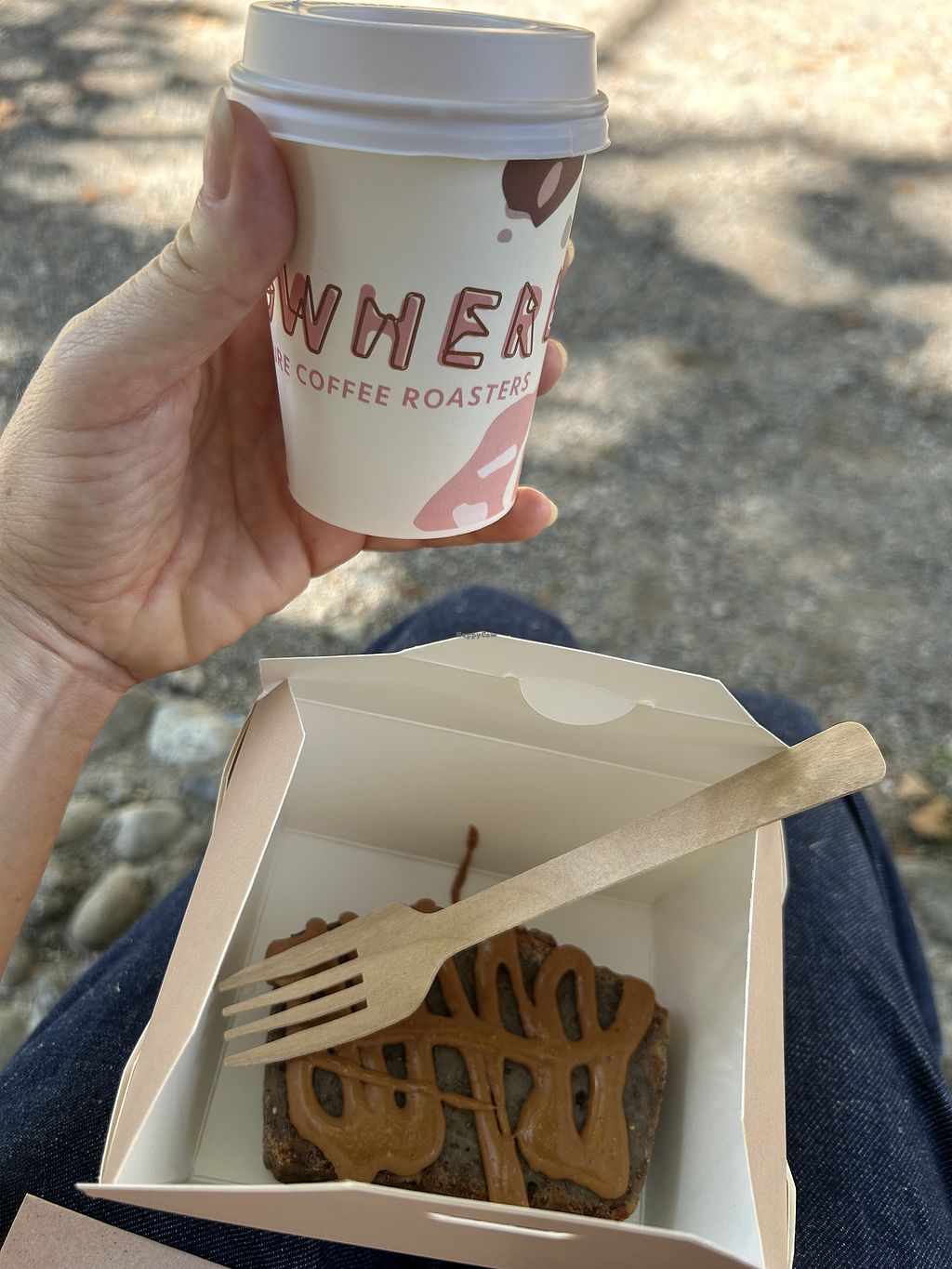 Read moreI ordered the corn fritters, which were very tasty, the avocado toast with vegan feta & almonds (extra points for having veg feta however, the guacamole and bread was just okay)- and the pimientos de padròn. We took home 2 desserts (brownie & banana cake- the carrot cake was also vegan) and we found them to be not fully cooked unfortunately 😕. We bought some of their coffee to make at home as it was very tasty!! Overall I wouldn’t recommend you to go there if you’re looking for a calm, relaxing brunch on a sunday because trust me, it’s busy as!! However we did appreciate the service, coffee, and some of their dishes.